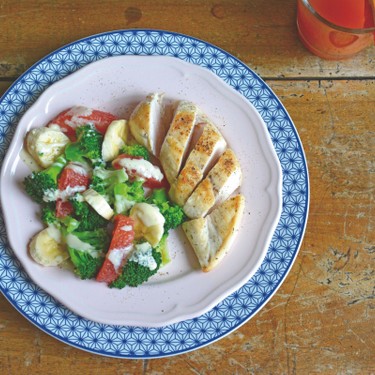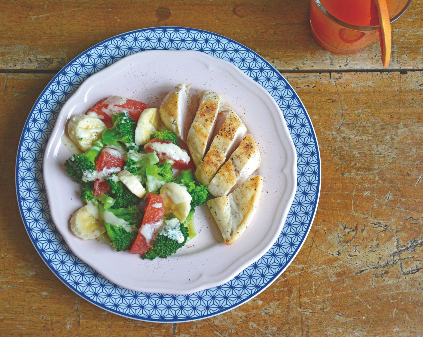 Pouletbrust an Bananen-Broccoli Gemüse.