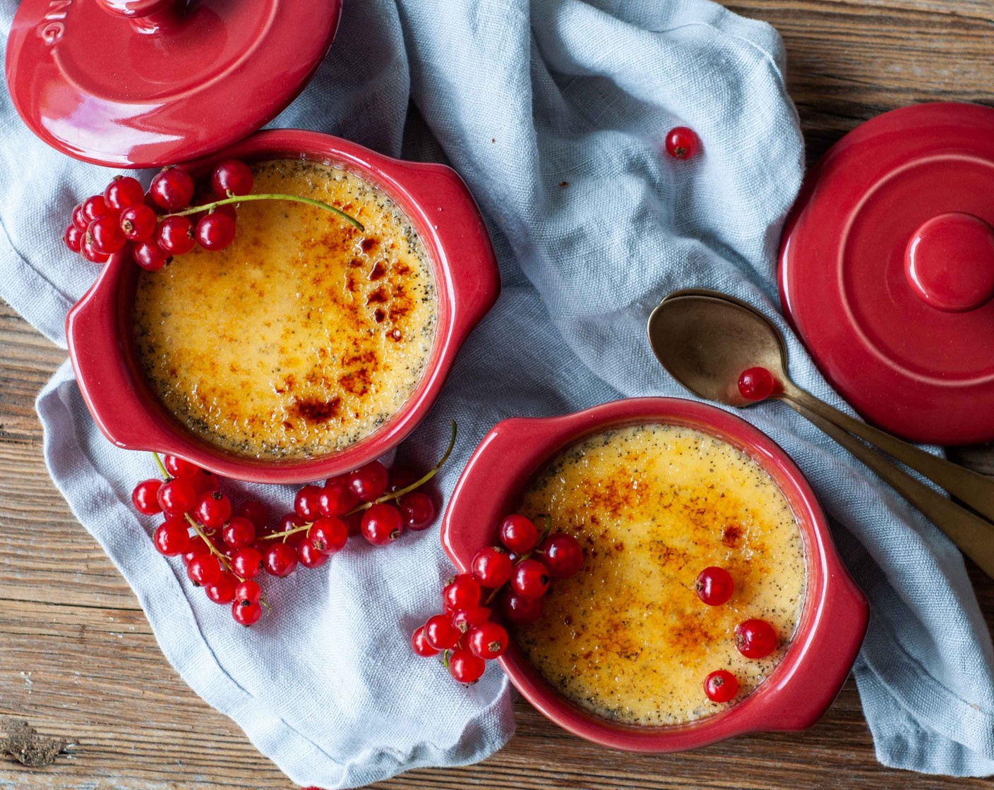 Die gebrannte Crème ist vergleichbar mit der Crema Catalan. Sie ist das ideale Dessert für Gäste, da es sich wunderbar vorbereiten lässt. Kurz vor dem Servieren musst du es nur noch abflämmen.