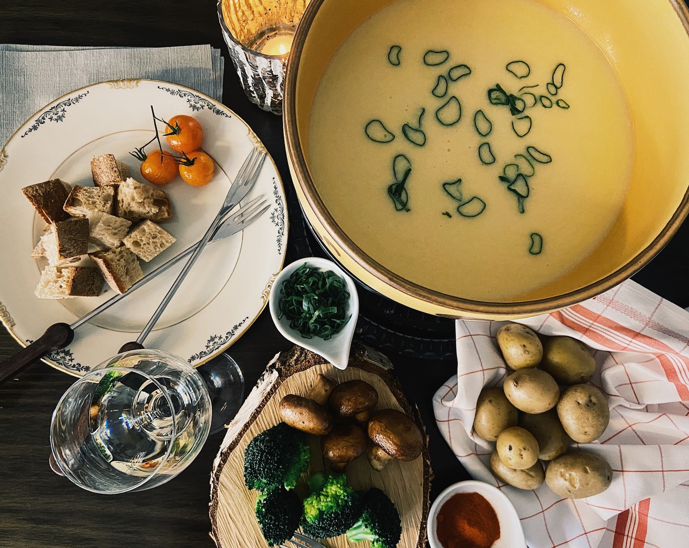 Das Schweizer Nationalgericht, asiatisch angehaucht. Adieu Schweizer Heimat. Dem klassischen Schweizer Nationalgericht, dem Käsefondue, wird etwas mehr Pep verliehen. Die Zugabe von würzigem Schweizer Käse ergibt die perfekte Kombination.