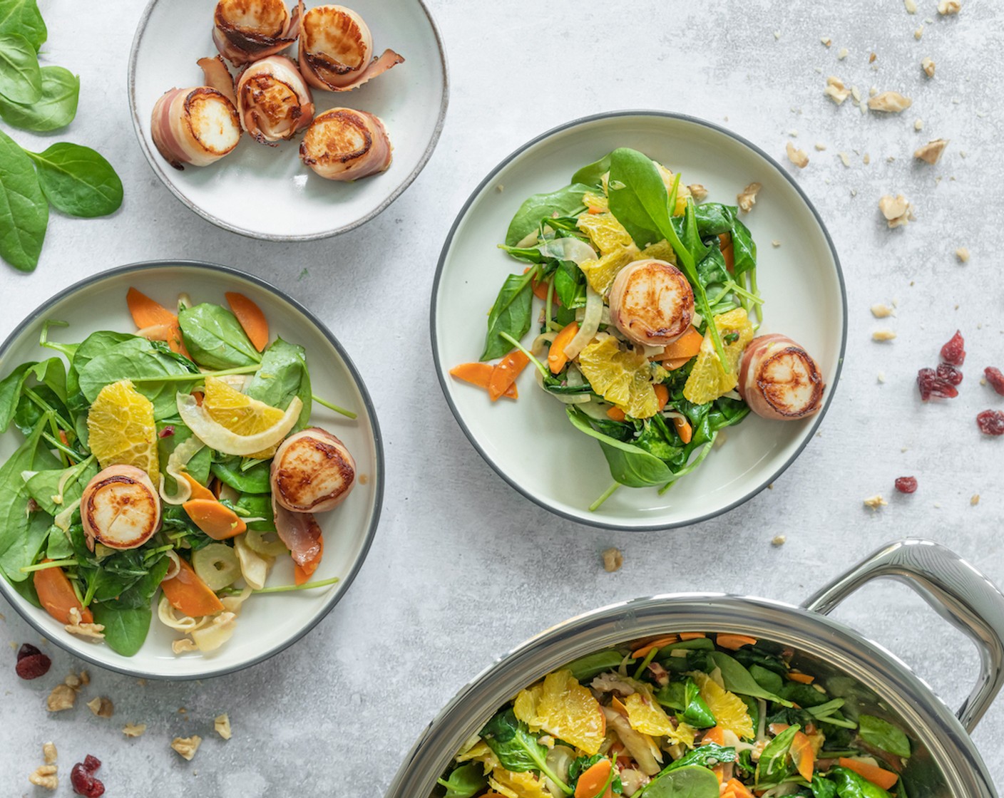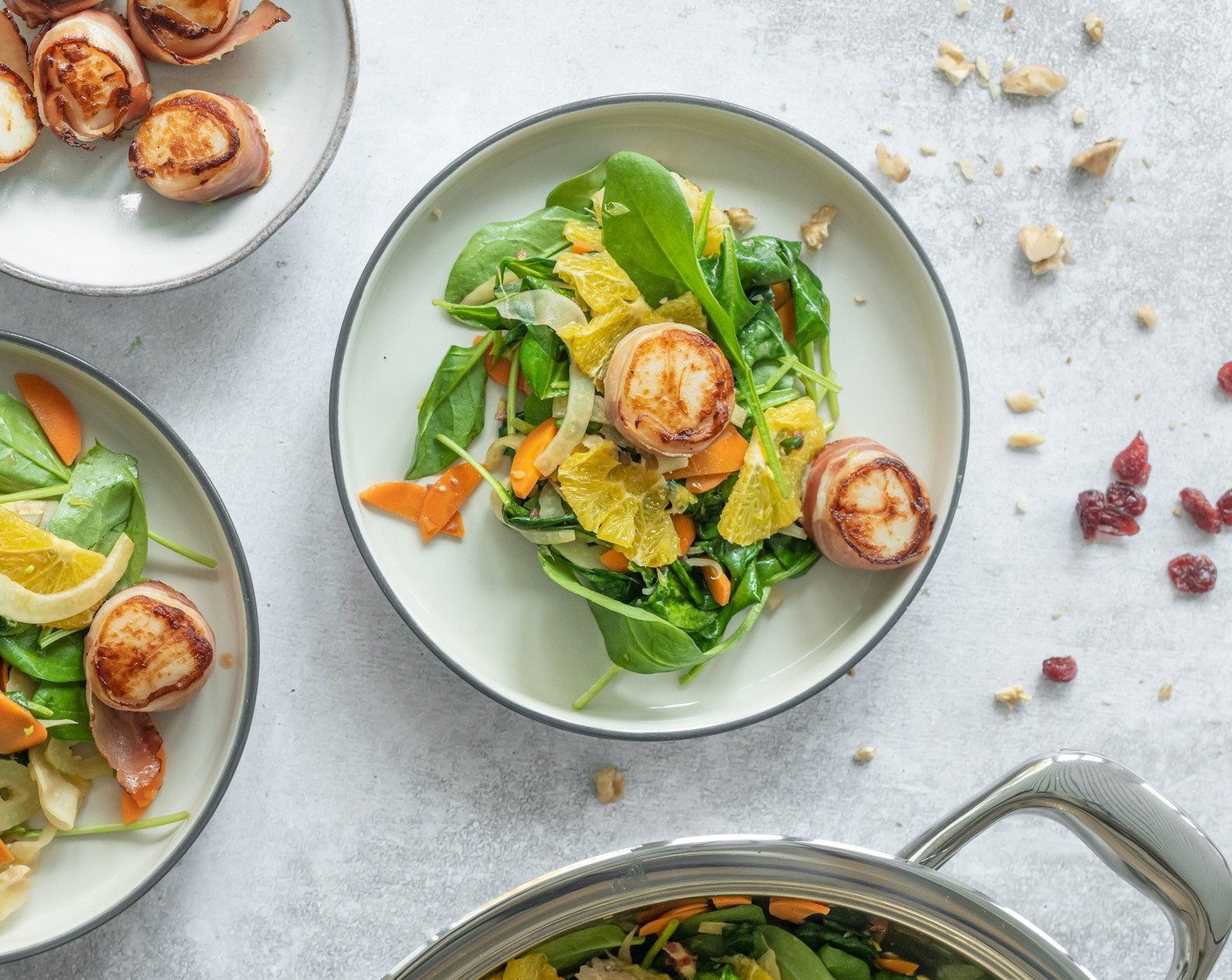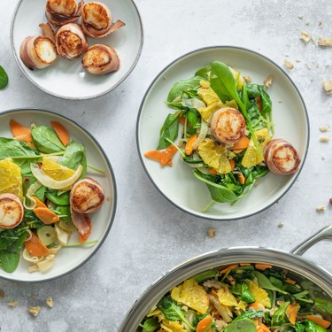 Ein einfaches, aber raffiniertes Gericht für’s Fest. Feine Jakobsmuscheln kombiniert mit rauchigem Speck auf einem knackigen Salat mit etwas fruchtiger Süsse. Lässt sich super vorbereiten, ist schnell fertiggestellt und wird deine Gäste und Lieben beeindrucken.