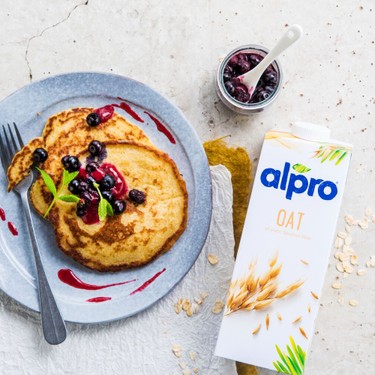 Hafer Pancakes mit Alpro Haferdrink Ohne Zucker. Dieses Rezept wurde gesponsert von Alpro.