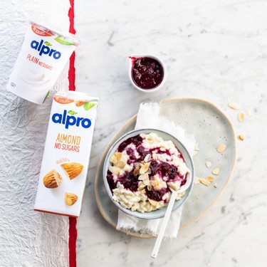 Milchreis mit Fruchtkompott. Dieses Rezept wurde gesponsert von Alpro.