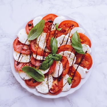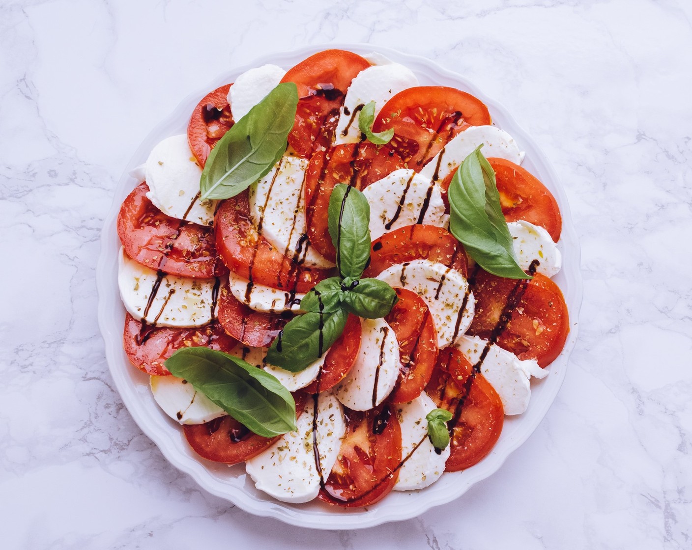 Frische Tomaten, Mozzarella, Olivenöl, etwas Balsamico sowie Basilikum braucht es für einen Tomatensalat Caprese.