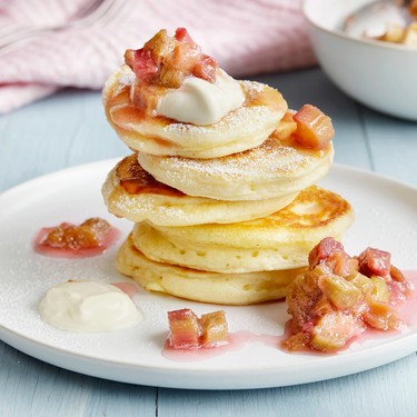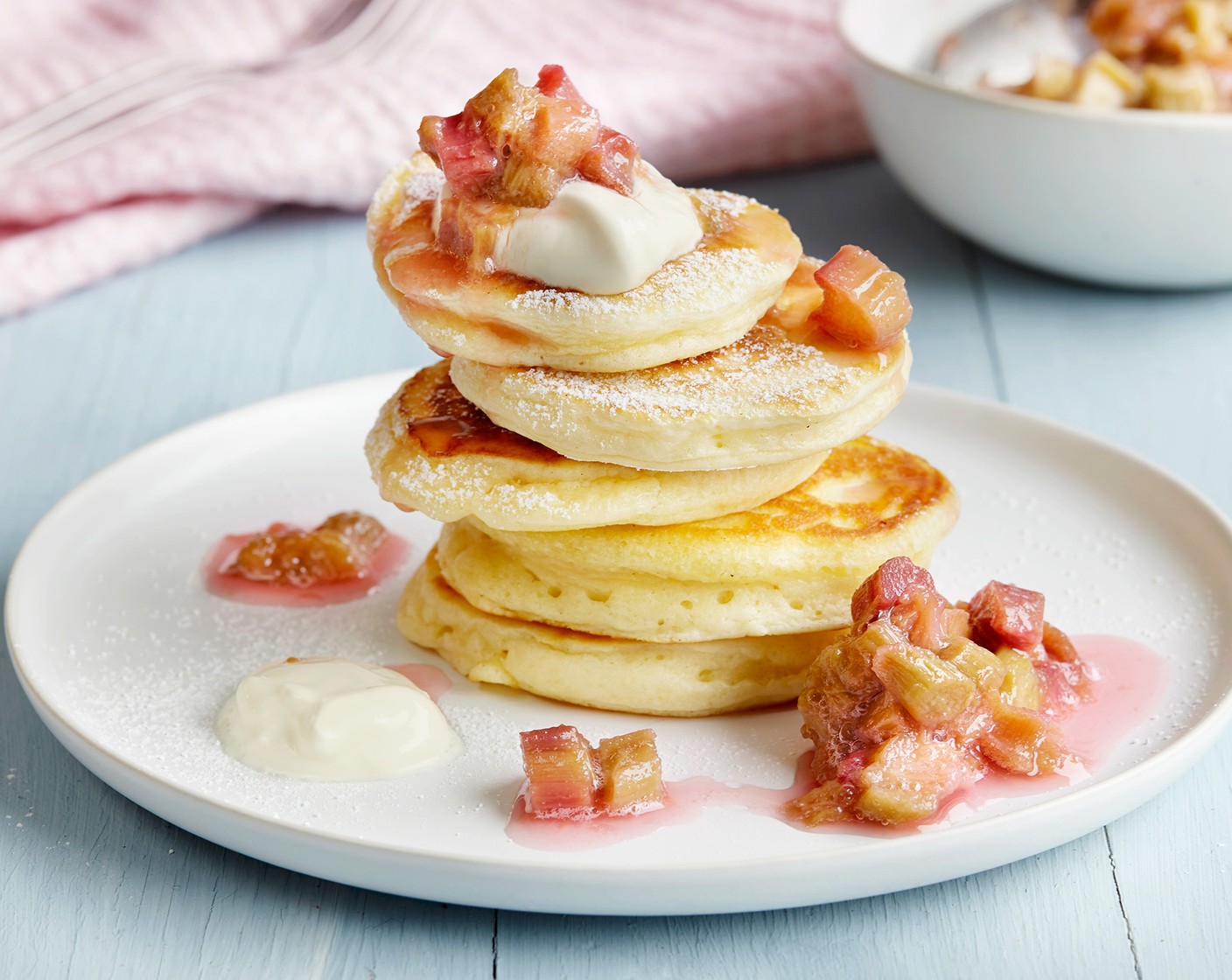 Pancakes selber machen ist kein Hexenwerk. Begleitet vom säuerlich-süssen Rhabarberkompott, entsteht ein Frühlingsrezept zum Verlieben!