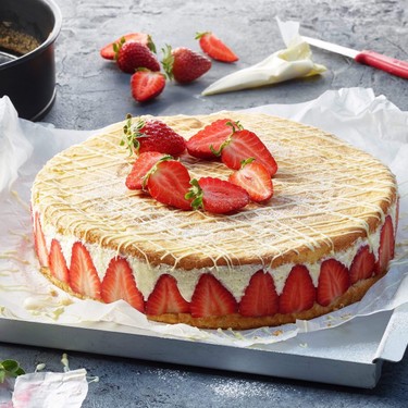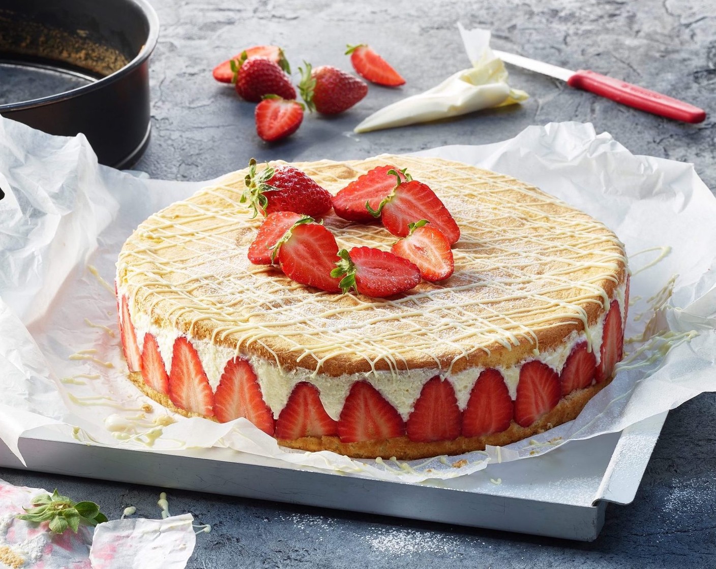 Sieht sie nicht fantastisch aus? Mit dieser Erdbeertorte, gefüllt mit selbst gemachter Vanillecrème, gewinnst du garantiert jeden Backwettbewerb. Wetten?
