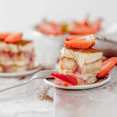 Das beliebteste Sommerdessert in Variation: Schon mal ein Erdbeertiramisu ohne Ei gemacht? Das geht. Die Kombi aus Schweizer Mascarpone und Rahm machts.