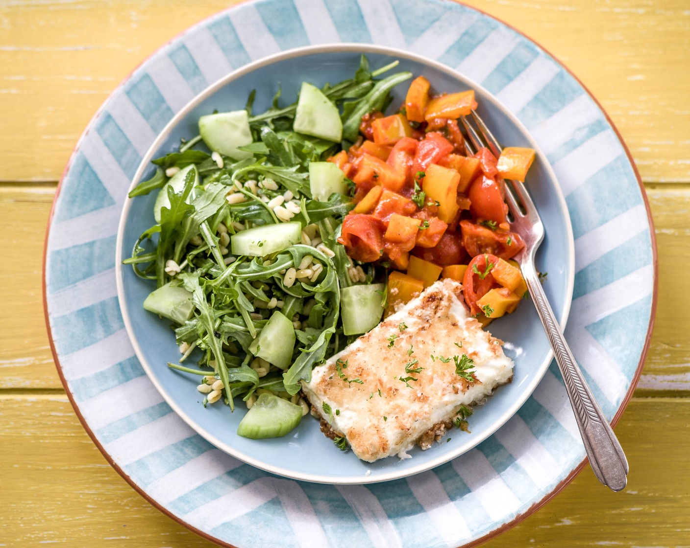 Bei diesem Gericht wird der Feta in goldbraun-knuspriger Panade zum Star deiner Mahlzeit. Den Wilden Westen schmeckst du dank des würzigen Raucharomas in der Gemüsepfanne – abgerundet wird das Ganze mit dem nussig-feinen Geschmack des Ebly-Salats. Bon Appetit!