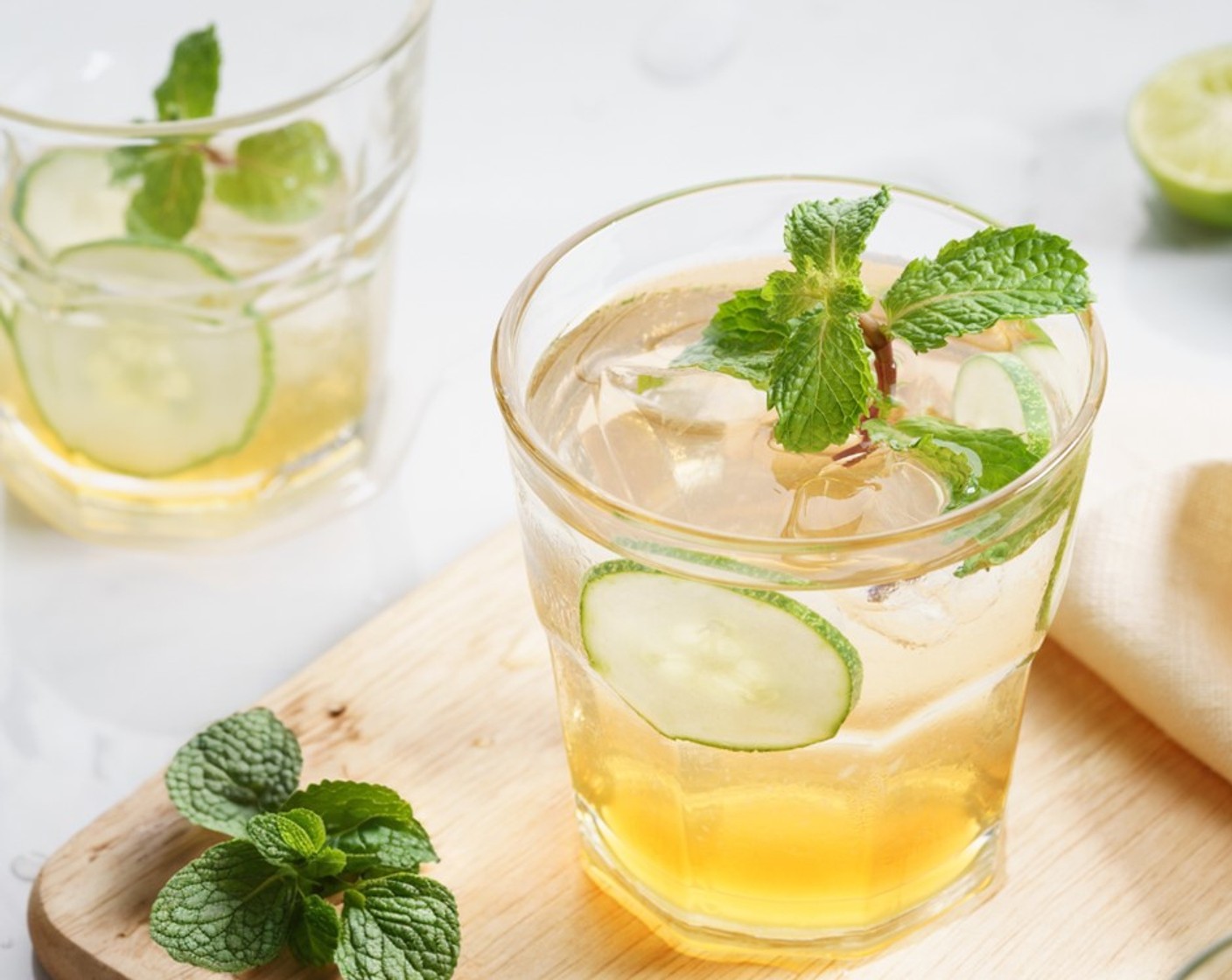 Erfrischendes Getränk mit Gurke und Limette, welches mit einem Mixer oder Slow Juicer zubereitet werden kann.