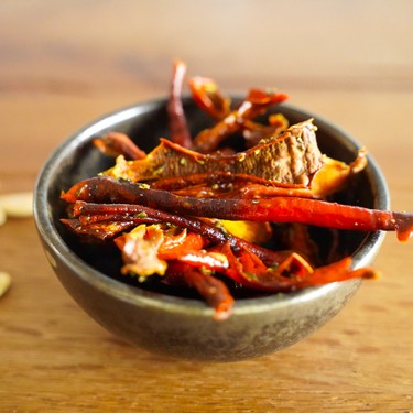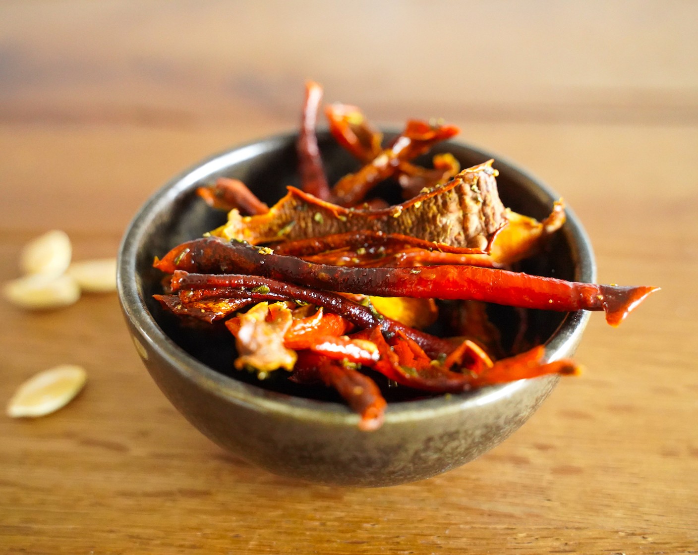 Super zur Resteverwertung und mit der richtigen Würze sind diese Chips aus Kürbisschalen überraschend lecker.