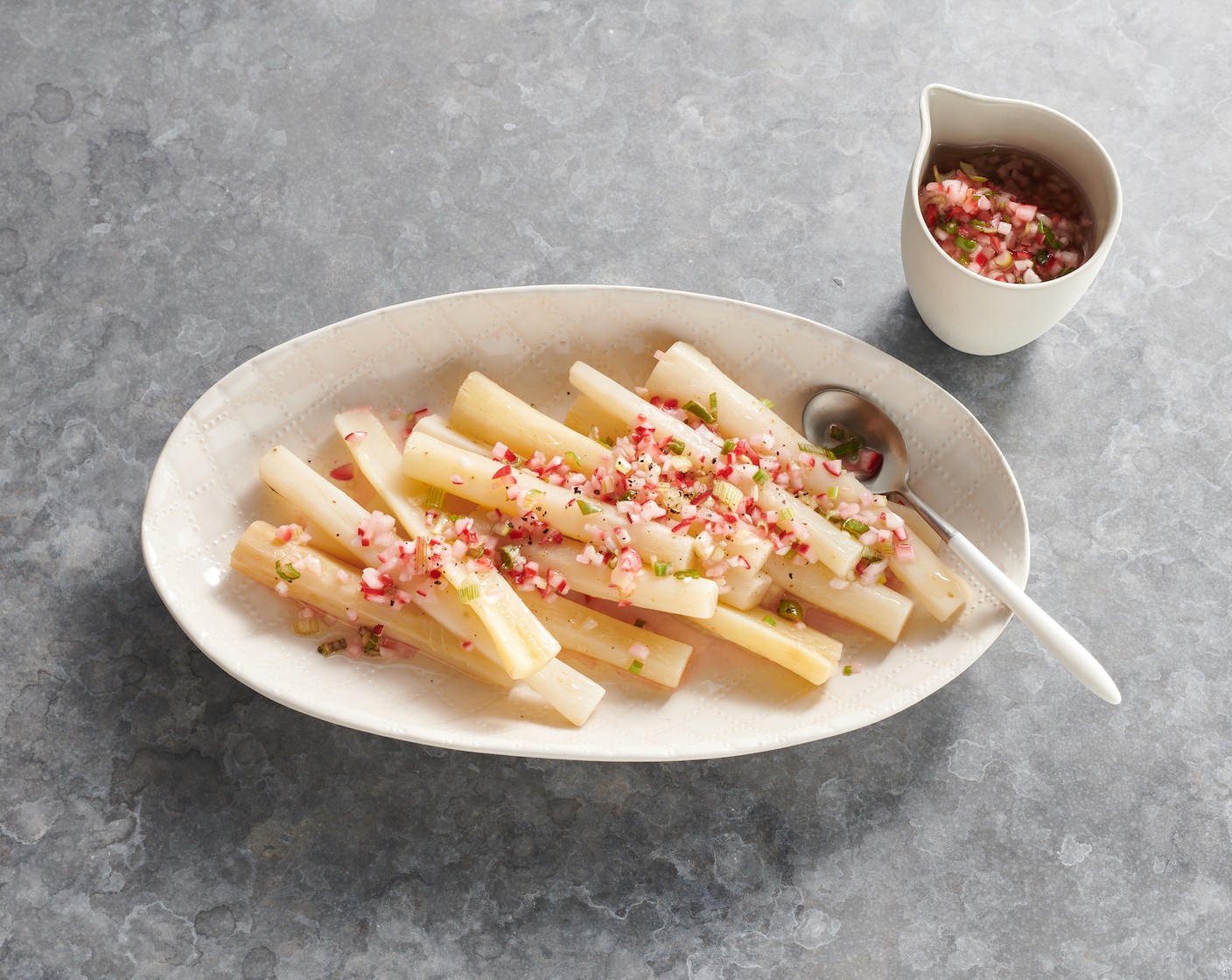Vinaigrette über die Schwarzwurzeln verteilen und warum servieren.