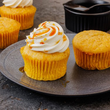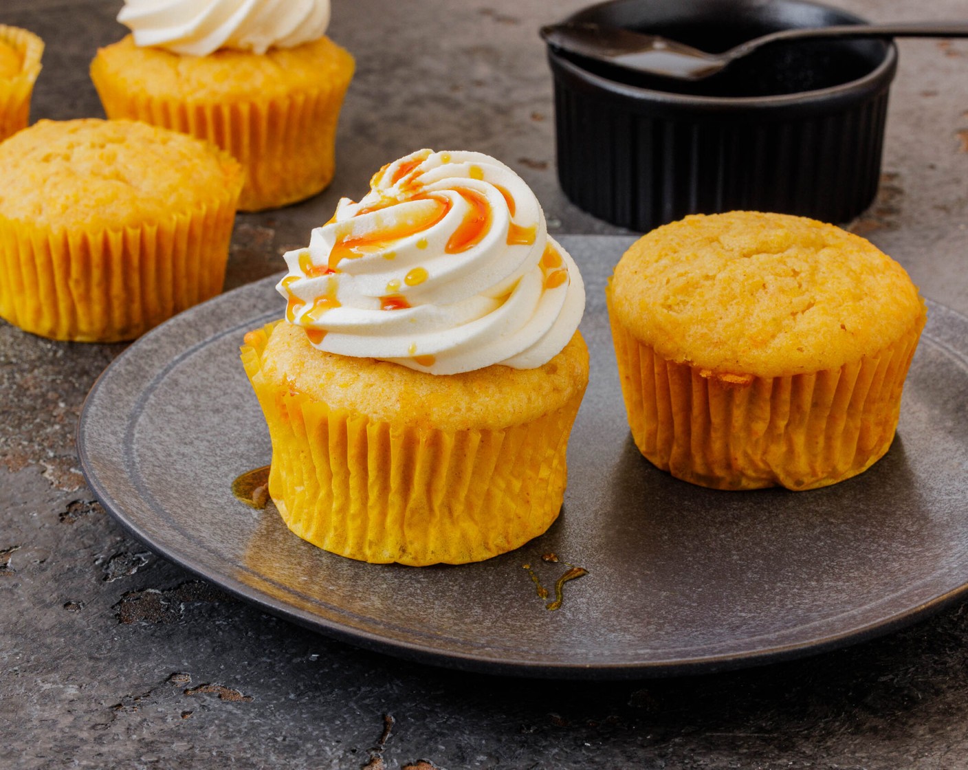 Yum, Yum – diese Muffins aus Kürbis, Lebkuchengewürz und Joghurt sind besonders saftig und zart. Feines Frosting mit Caramelsauce toppt dieses Rezept.