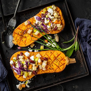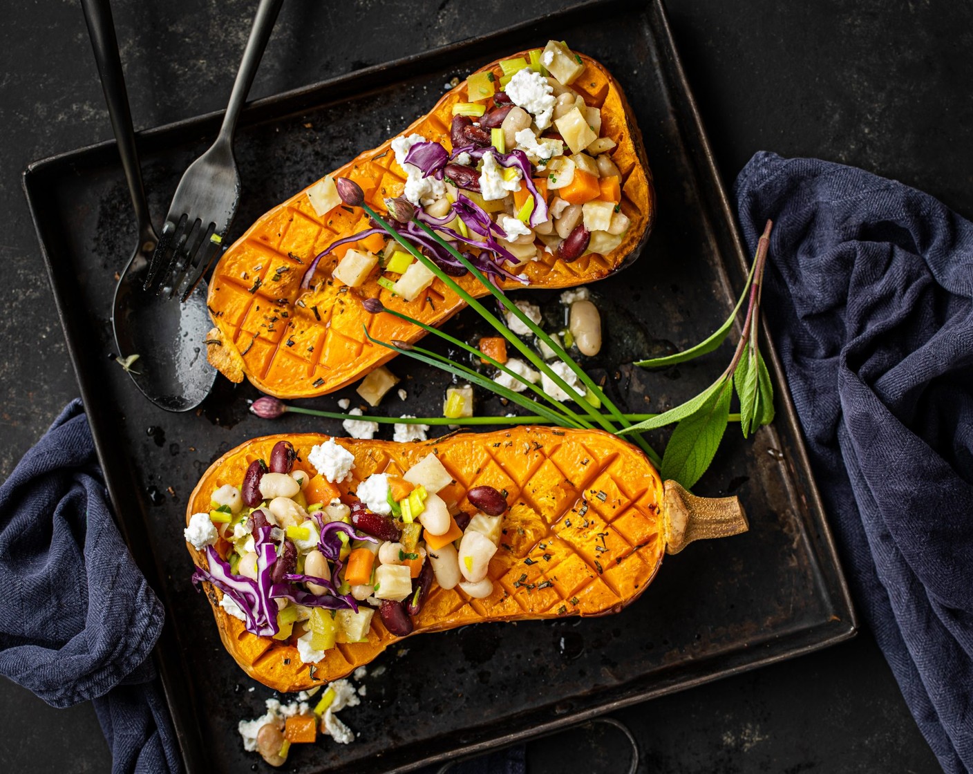 Eine Augenweide! Dieses Kürbis-Rezept ist wirklich mal etwas anderes. Es schmeckt wunderbar aromatisch, kommt ohne Fleisch aus und ist gut zu dir.