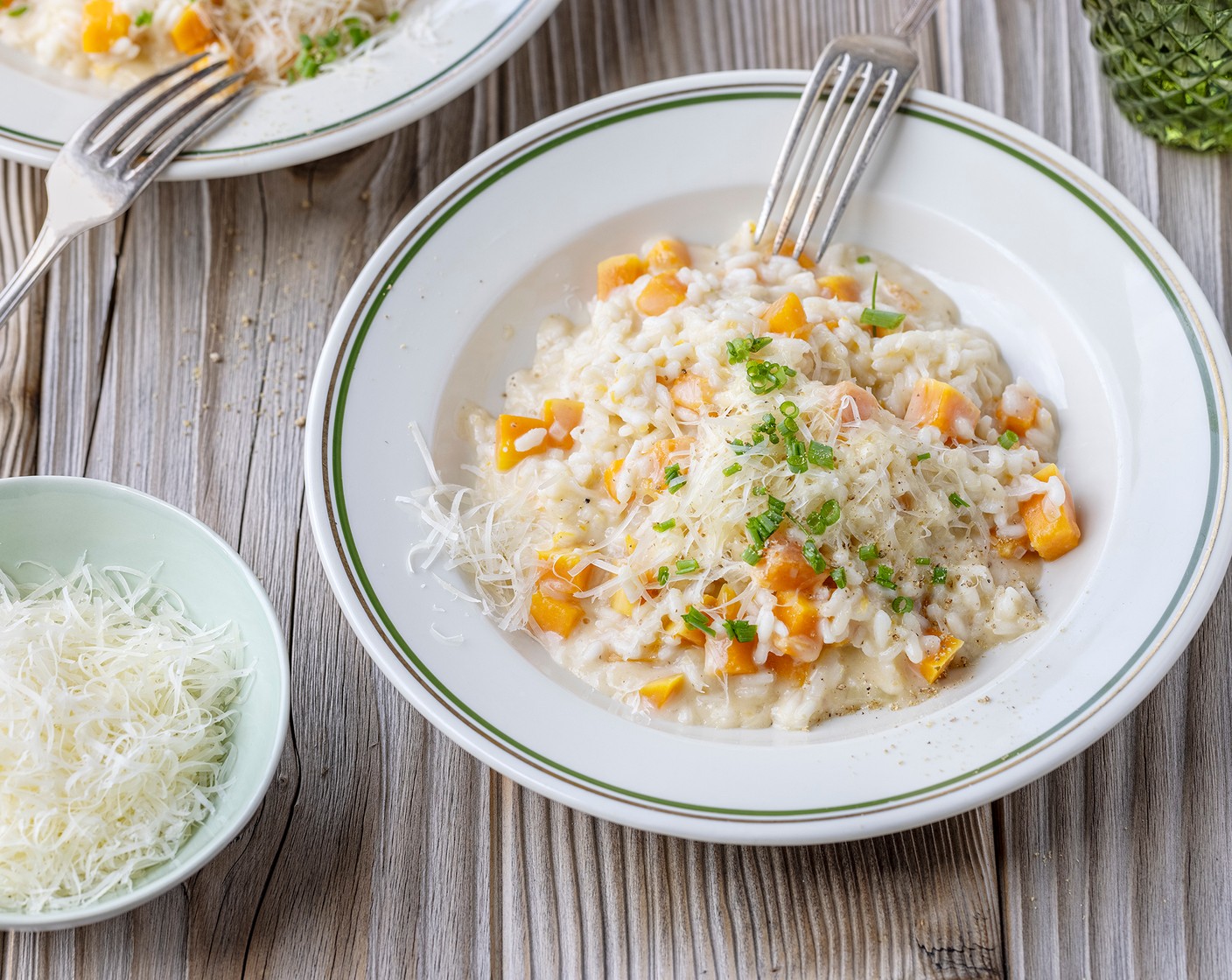 Landfrau Giovanna Lehmann empfiehlt ihren ganz speziellen, wunderbar sämigen Risotto, den sie mit Kürbis anreichert. Würziger Reibkäse kommt auch dazu.
