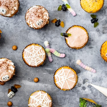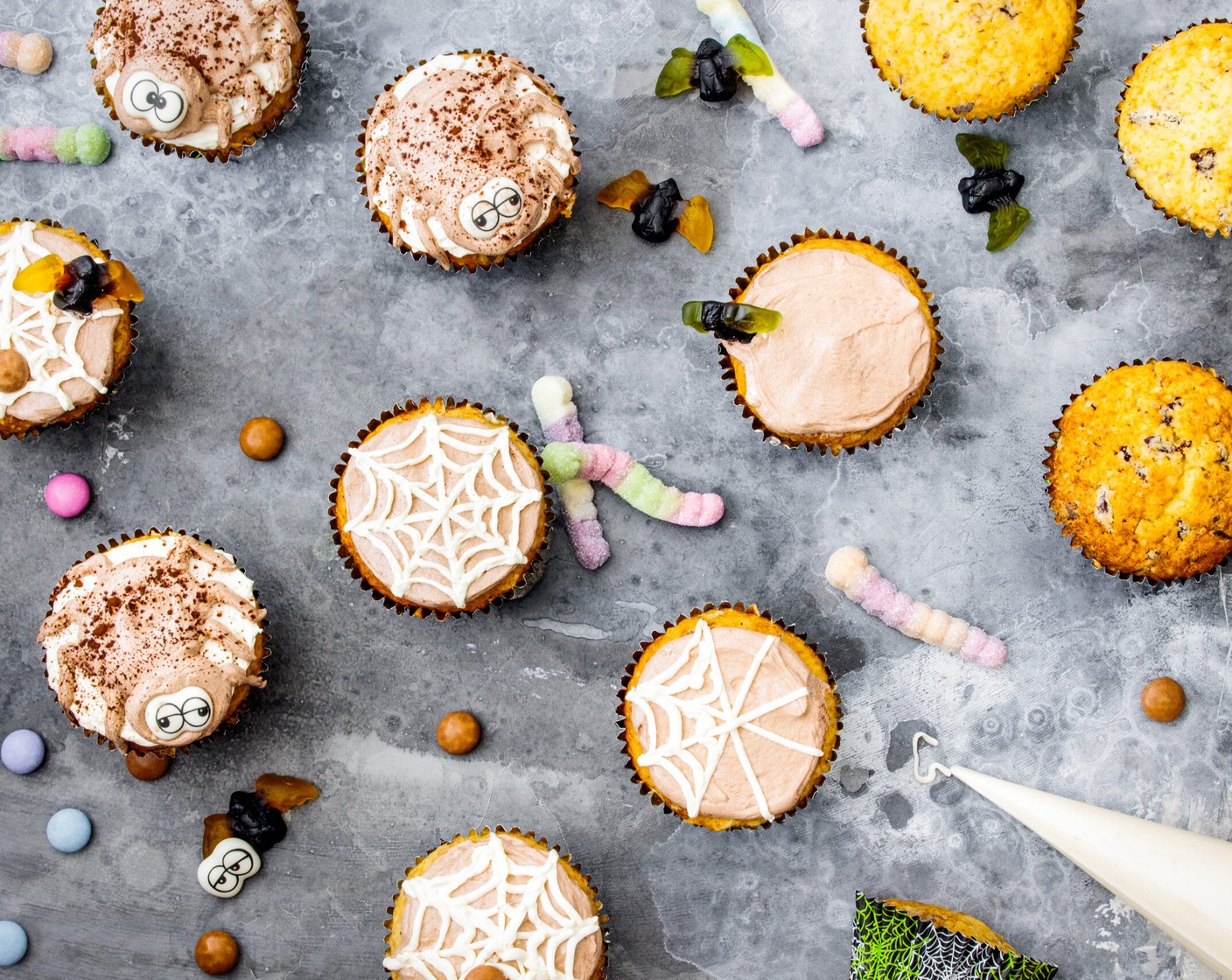 Schauerlich schön sehen diese schmatzigen Cupcakes aus. Wie du aus dem Frosting die Spinne oder das Spinnennetz kreierst, zeigen wir dir hier.