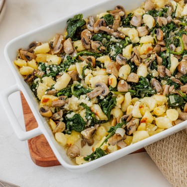 Der Käse wird in diesem Rezept über die heissen Spätzli gerieben und verläuft. Jetzt noch Spinat und Pilze dazu und fertig ist ein köstliches Gericht.