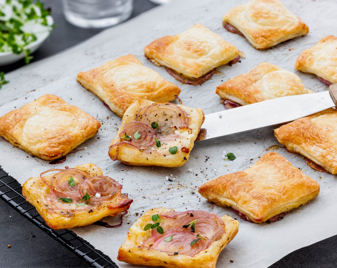 Tarte Tatin hier nicht mit Äpfeln, sondern mit Zwiebeln. Sie nehmen durch das Backen ein fein süssliches Aroma an. Schnell gemacht. Ideal zum Apéro.