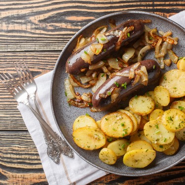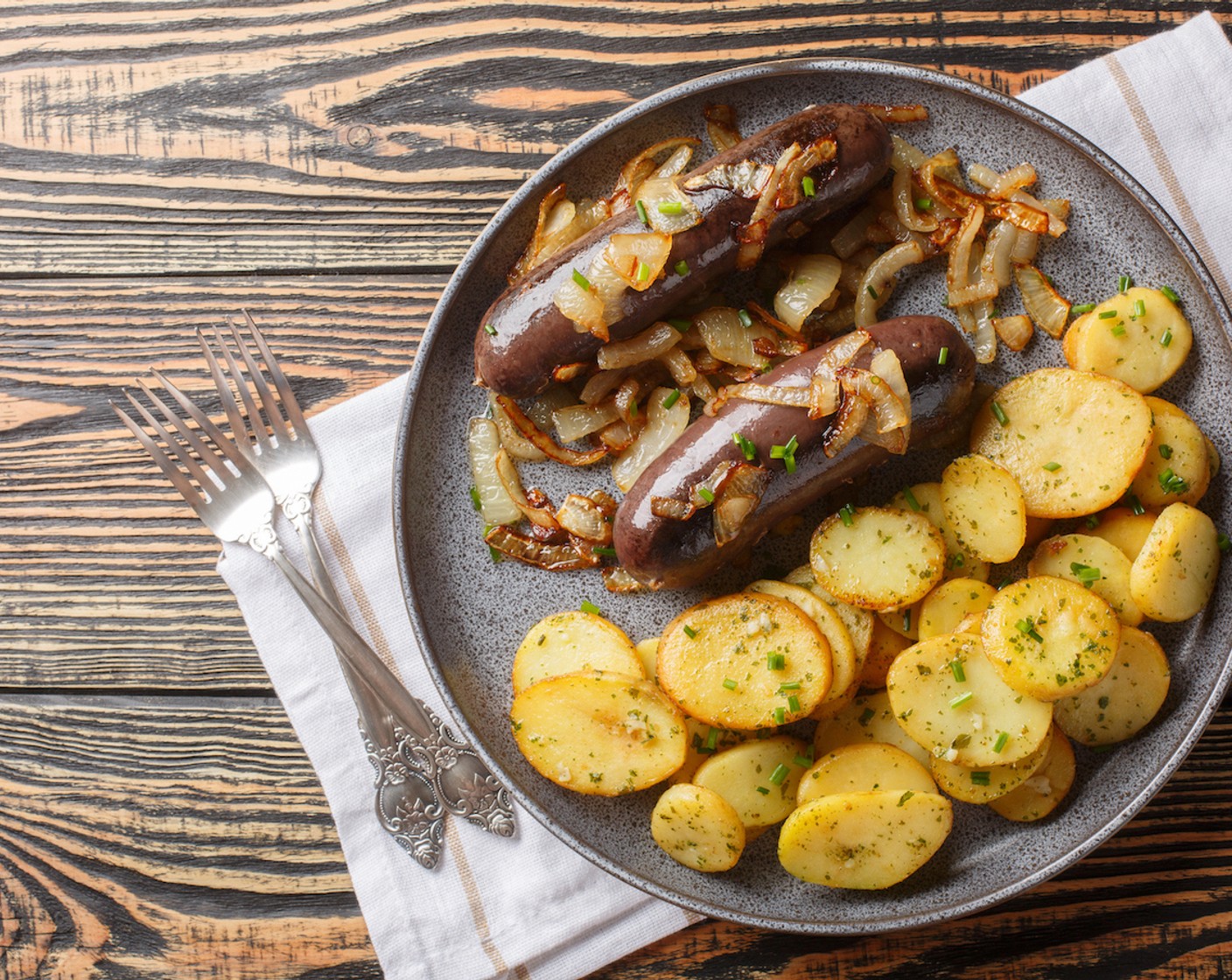 Kurzbeschreibung: Ein besonders geschmacksintensives Menü: Blutwurst schmeckt nicht nur als Bestandteil der traditionellen Metzgete, sondern auch gebraten mit Zwiebeln und Kräuter-Bratkartoffeln.
