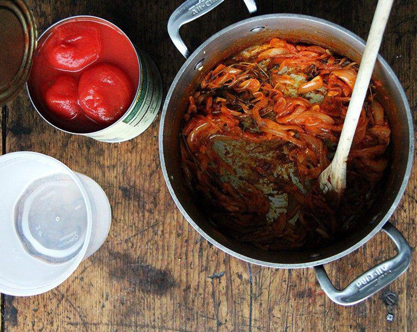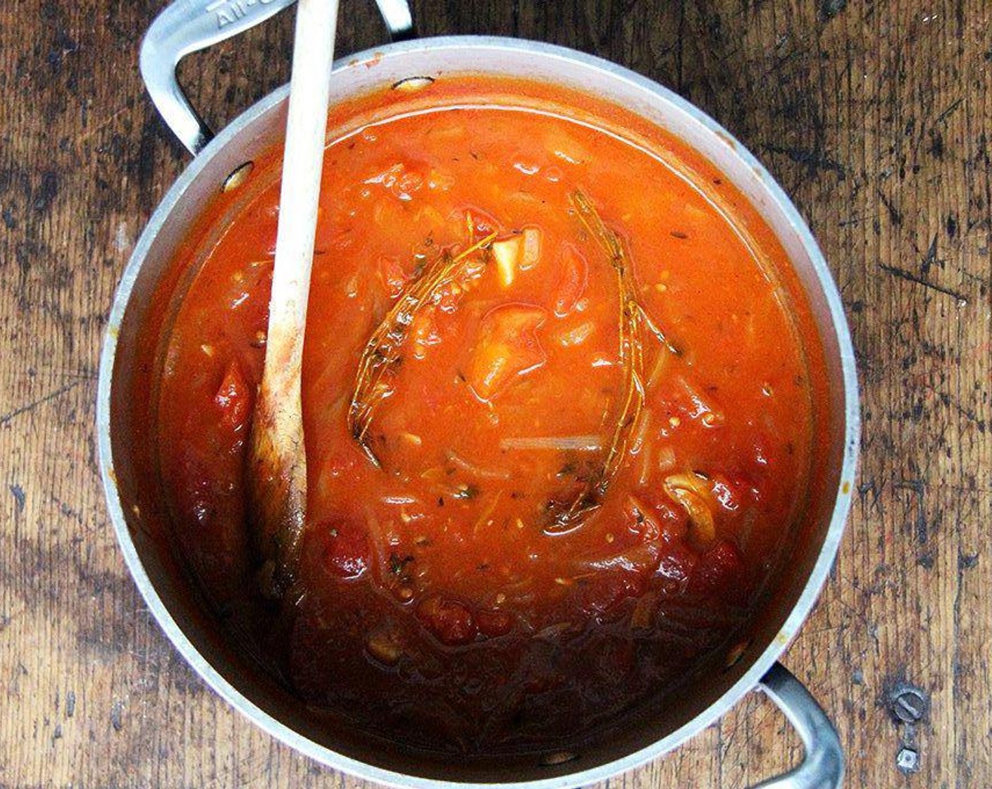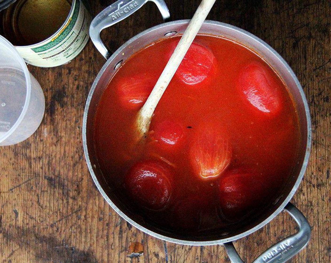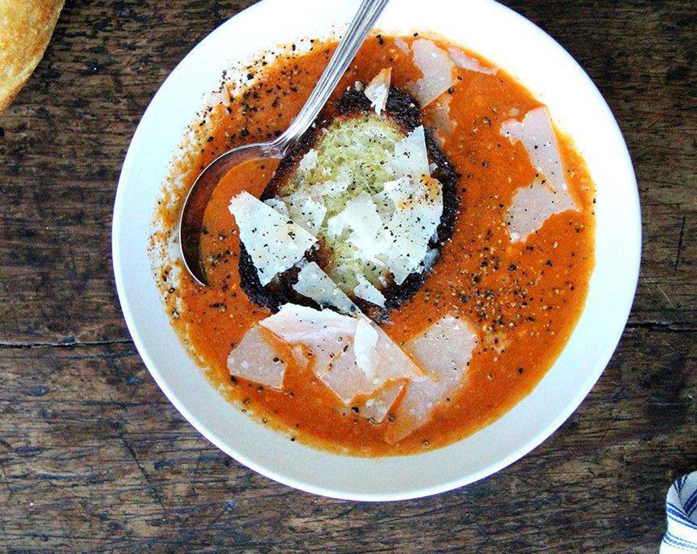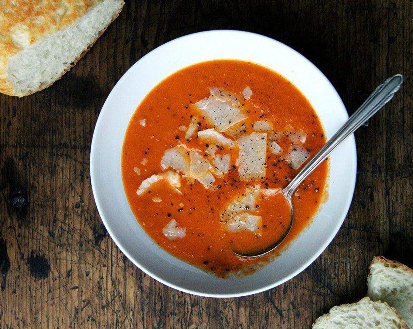 Das Rezept ist denkbar einfach und man hat fast alles zu Hause: Zwiebeln, Knoblauch, Tomatenmark und geschälte Dosentomaten. Eventuell kann Thymian auf die Einkaufsliste gesetzt werden, obwohl die Suppe auch ohne hervorragend schmeckt. Etwas Sahne verleiht dem Gericht die nötige Cremigkeit und gleicht die Säure und Süsse der Tomaten aus.