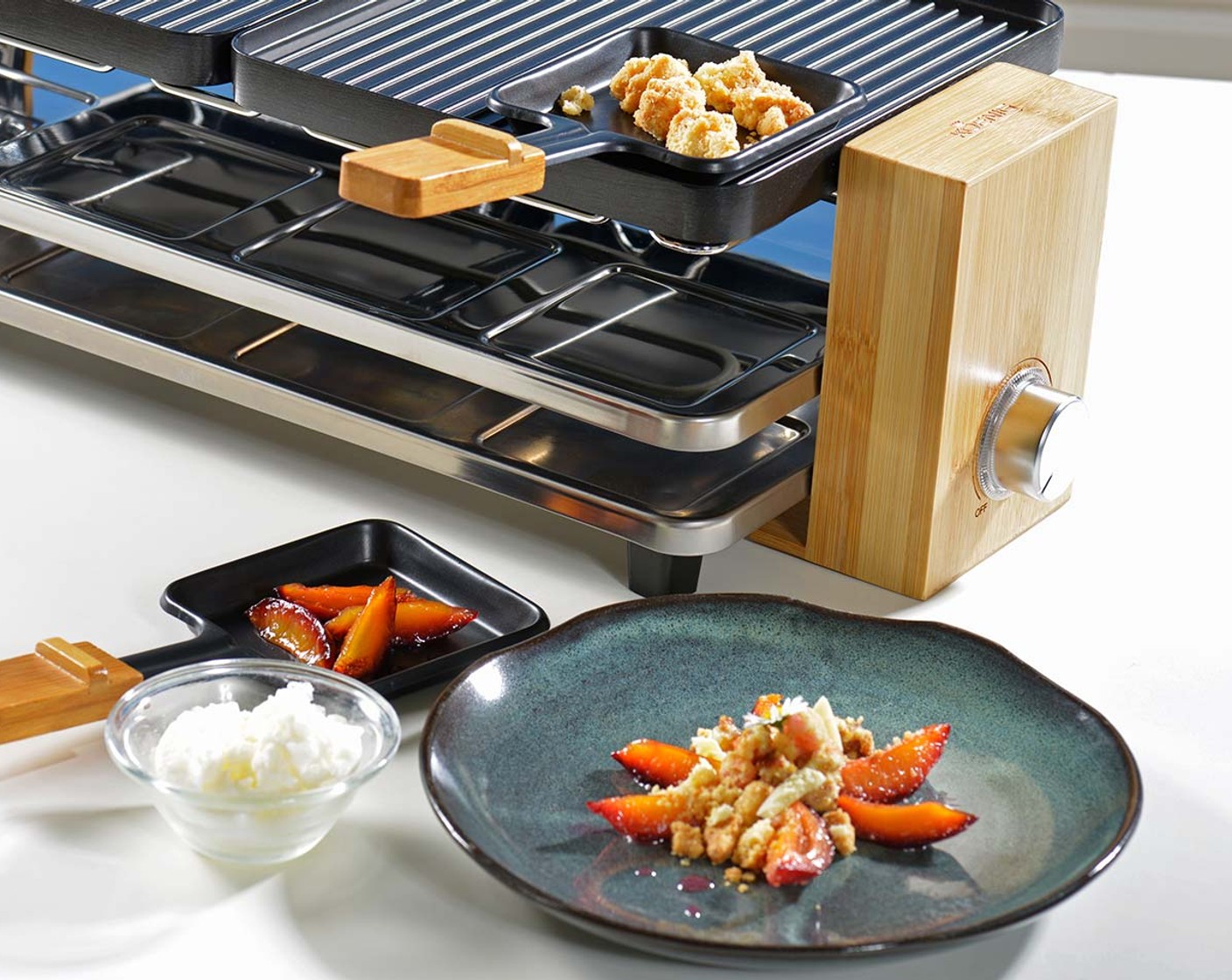 Lass dich von der Magie des Kochens am Tisch verzaubern und erlebe unvergessliche Momente der Geselligkeit: Entdecke die von Spitzenköchen entwickelten Gourmet-Rezepte für Raclette-Grills. Wie wäre es zum Beispiel mit dieser traumhaften Dessertkomposition von Karim Schumann?