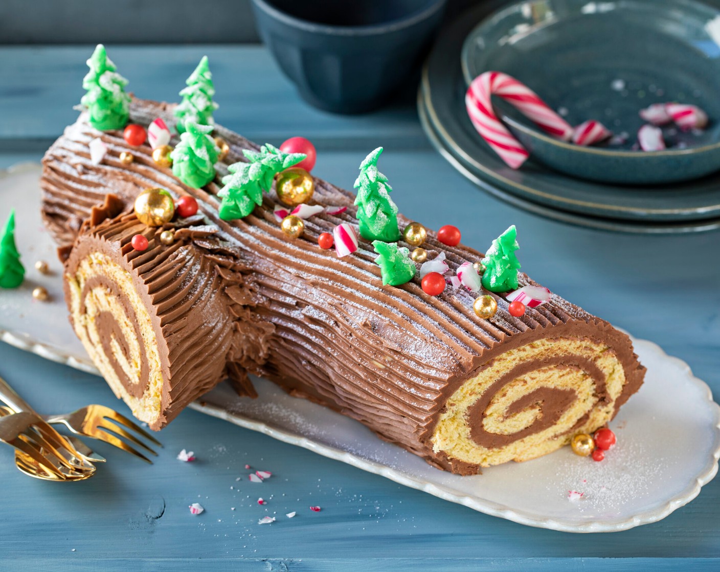 Nicht nur zu Weihnachten schmeckt diese Biskuitroulade mit köstlicher Schokoladen-Buttercrème einfach himmlisch. Eine Torte zum Niederknien fein.