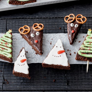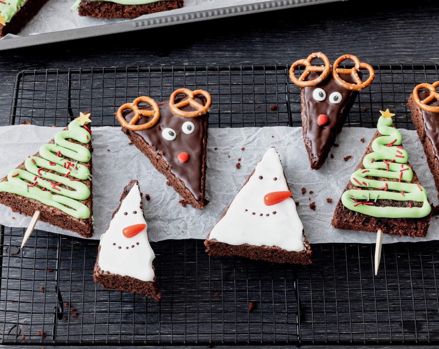 Diese feinen Brownies sehen allerliebst aus. Zu Weihnachten mit Schokolade und Lebkuchengewürz als Rudolf das Rentier, Schneemann oder Tannenbaum.