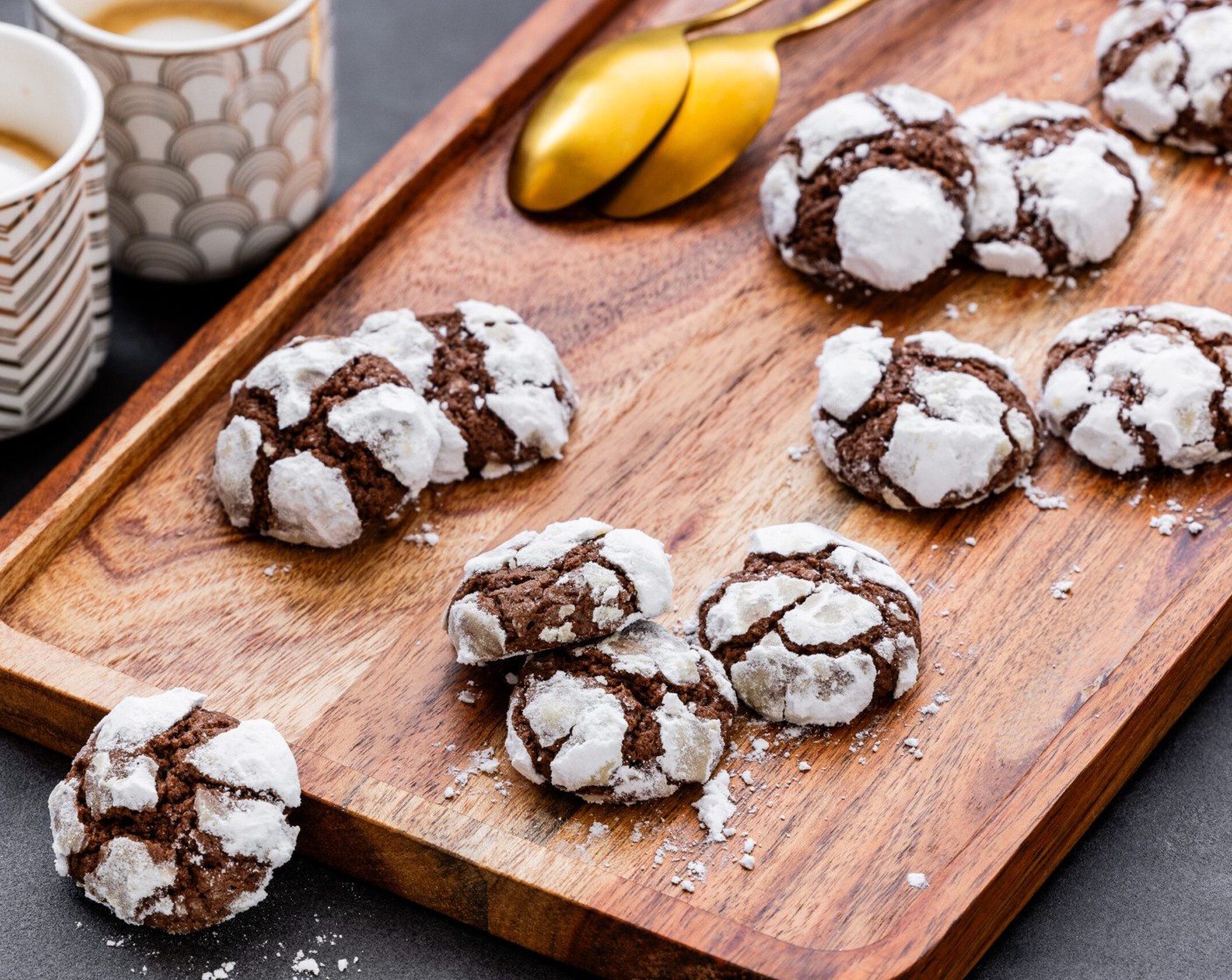 Wunderbar crunchy sind und herrlich schoggig schmecken diese Cookies mit viel Schokolade und Kakao. Chocolate Crinkle Cookies sind der Guetzli-Renner.