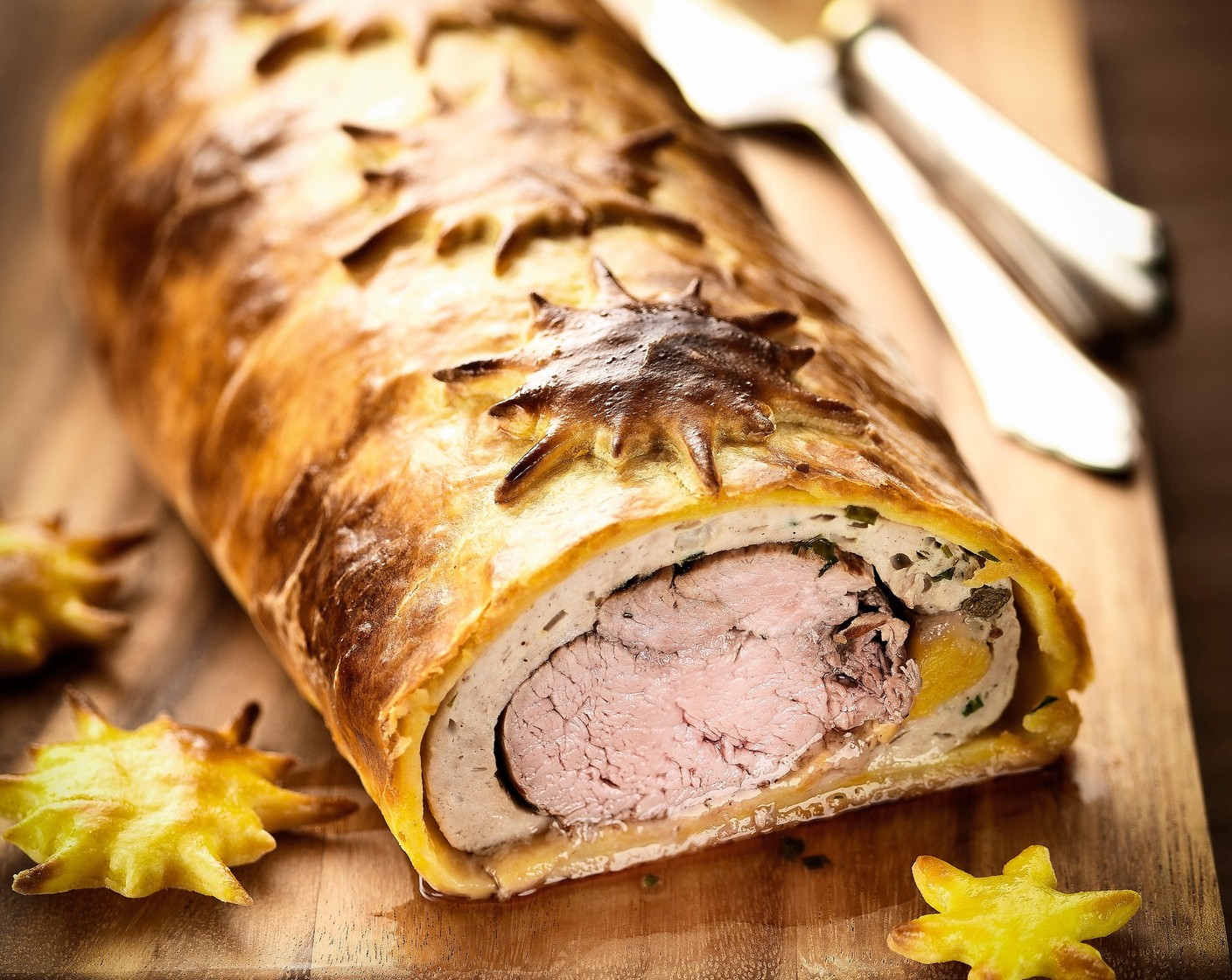 Aussen knusprig, innen zart: Für dieses Filet-im-Teig-Rezept verwenden wir Kalbsfilet, Brät sowie Kapern. Ein festliches Rezept aus dem Ofen.