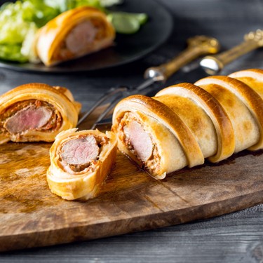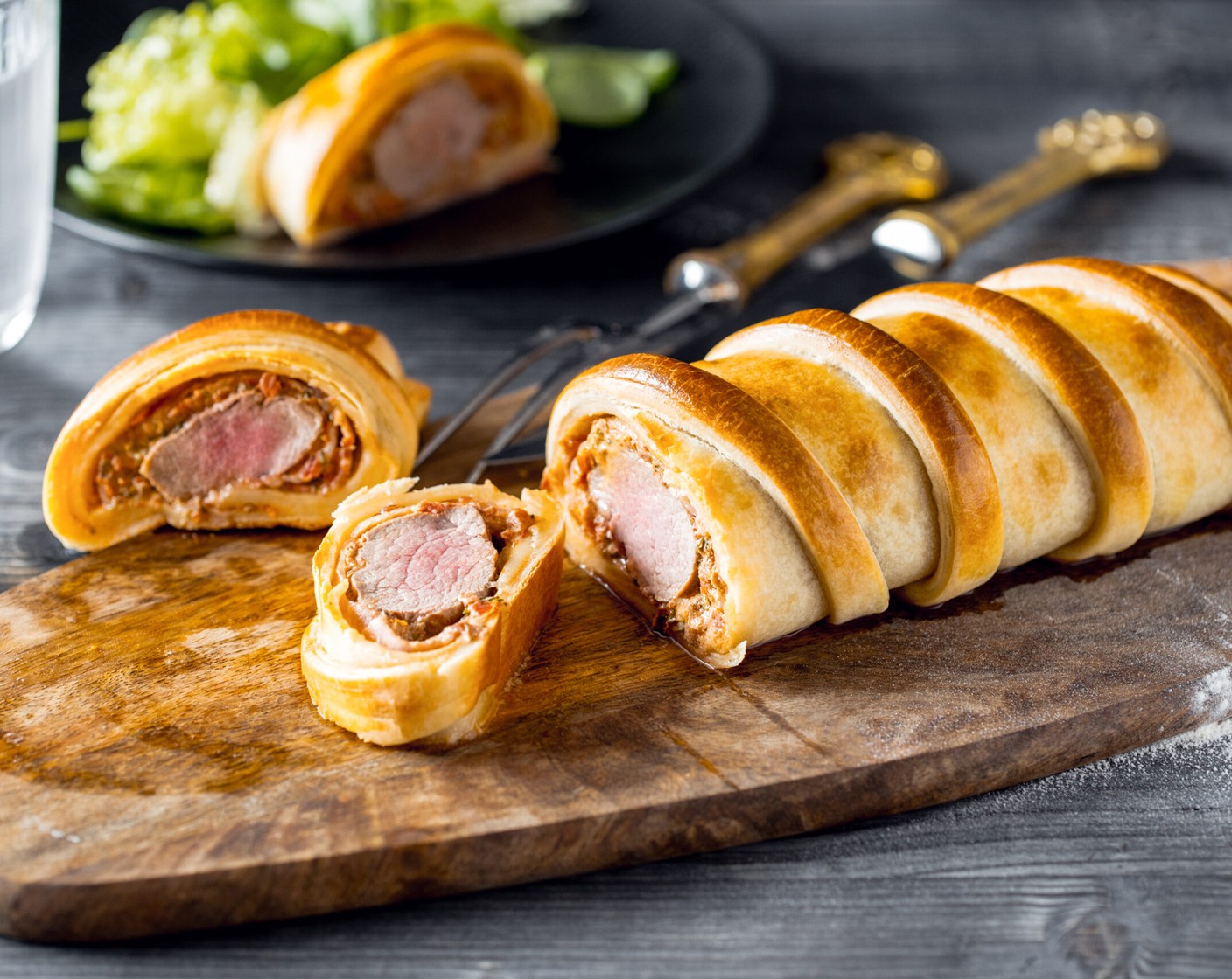 Bei diesem Filet im Teig umhüllt feinster Butterblätterteig das Schweinsfilet mit einer raffinierten Farce aus getrockneten Tomaten und Frischkäse.