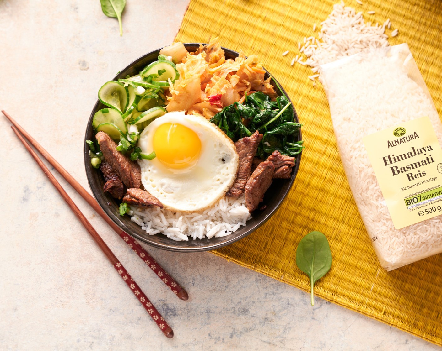 Kennen Sie Bibimbap schon? Dieses traditionelle Reisgericht aus Korea begeistert mit seiner Vielfalt an Aromen und Texturen. Bibimbap bedeutet übersetzt "gemischter Reis" und genau das ist es auch - eine bunte Mischung aus verschiedenen Zutaten, die auf einer Schüssel Reis serviert werden. Das Gericht besteht aus frischem Gemüse, mariniertem Rindfleisch und einem perfekt gekochten Ei on top. Abgerundet wird das Ganze mit einer würzigen Sauce. Lassen Sie sich von diesem Rezept inspirieren und tauchen Sie ein in die faszinierende Welt der koreanischen Küche!