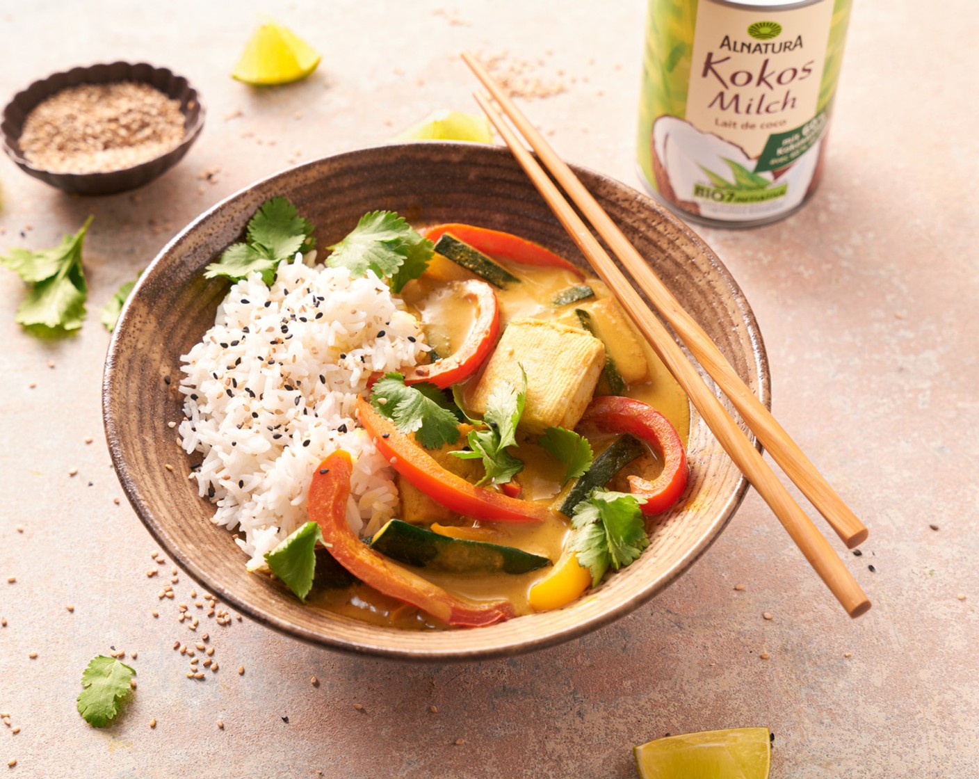Dieses klassische Gericht ist perfekt für alle, die es gerne würzig mögen und die Aromen der thailändischen Küche lieben. Das rote Curry wird mit frischem Gemüse zubereitet und mit cremiger Kokosmilch verfeinert. Die Gewürzmischung aus roter Currypaste, Ingwer und Knoblauch verleiht dem Gericht eine angenehme milde Schärfe. Serviert mit Basmatireis ist dieses rote Thai-Curry ein wahrer Genuss und entführt Sie in die Vielfalt der thailändischen Küche in Ihrem eigenen Zuhause!