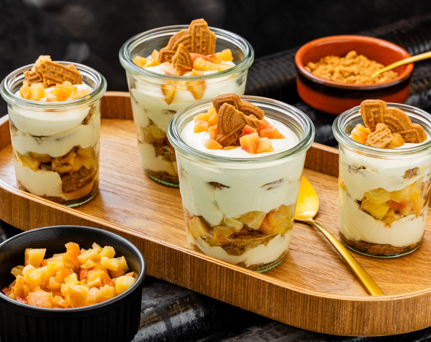 Das Dessert hat es in sich: Die Äpfel werden mit Zimt und Butter gedünstet, die Spekulatius mit Kaffee und Mandellikör getränkt, dazu Mascarponecrème.
