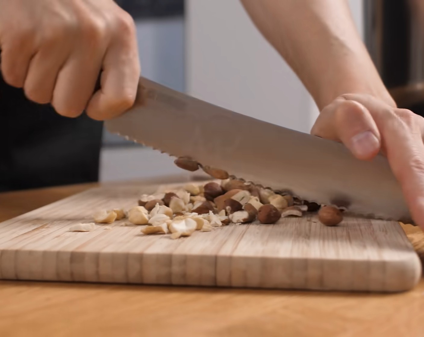 Danach die Nüsse gut auskühlen lassen und dann etwas klein hacken.
