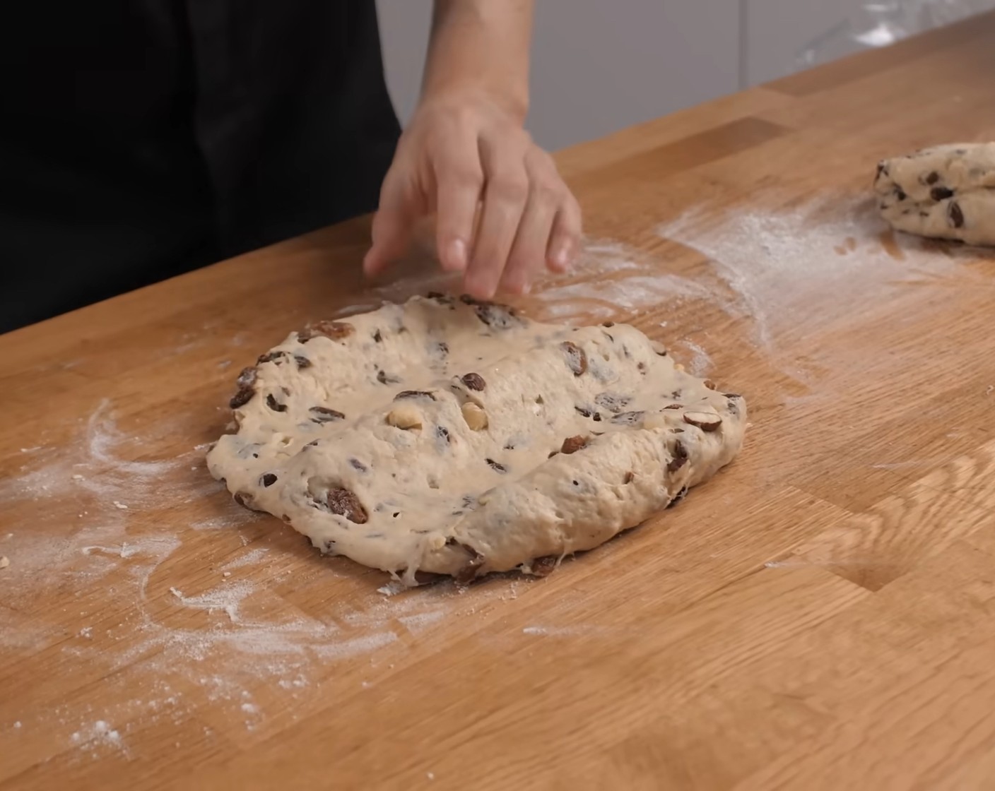 Danach den unteren Teiglappen über den restlichen Teig legen und die Nahtstelle etwas flach drücken.
