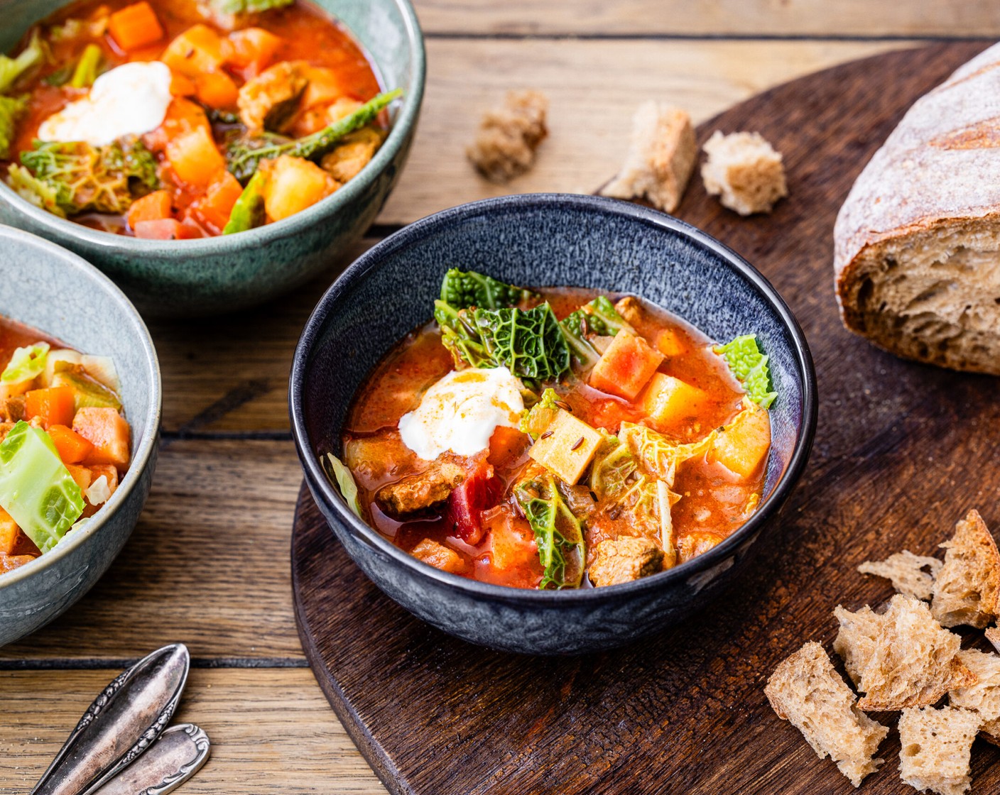 Was gibt es Besseres als eine deftige Gulaschsuppe, wenn es draussen kalt ist? Eben. Diese Suppe mit klassischem Wintergemüse wärmt auch das Gemüt.