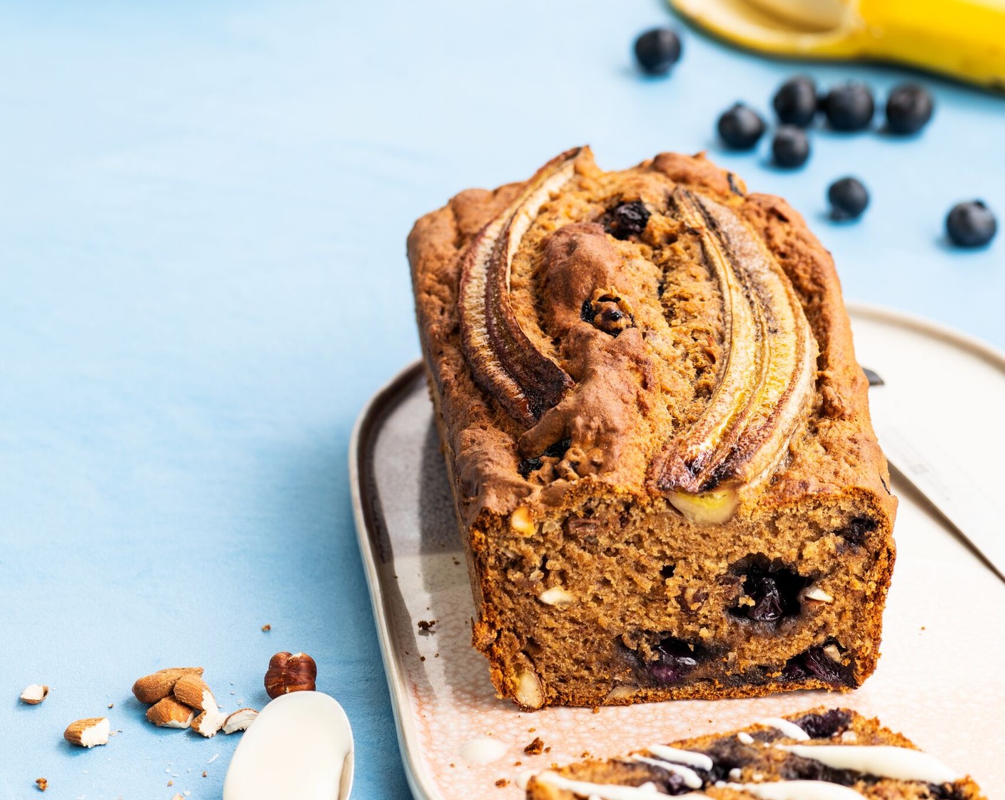 Ein süsses Bananenbrot mit Nüssen und so einfach zuzubereiten mit Alpro® Soja-Joghurtalternative Natur ohne Zucker.