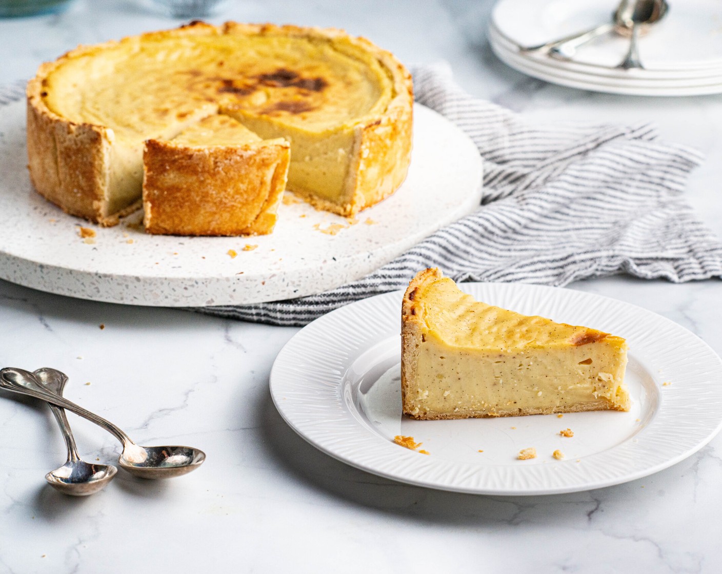 Dieser herrlich cremige Kuchen wird in Frankreich heiss geliebt. Eier, Milch und Vanille verbinden sich zu einem köstlichen Flan auf dem Kuchenteig.