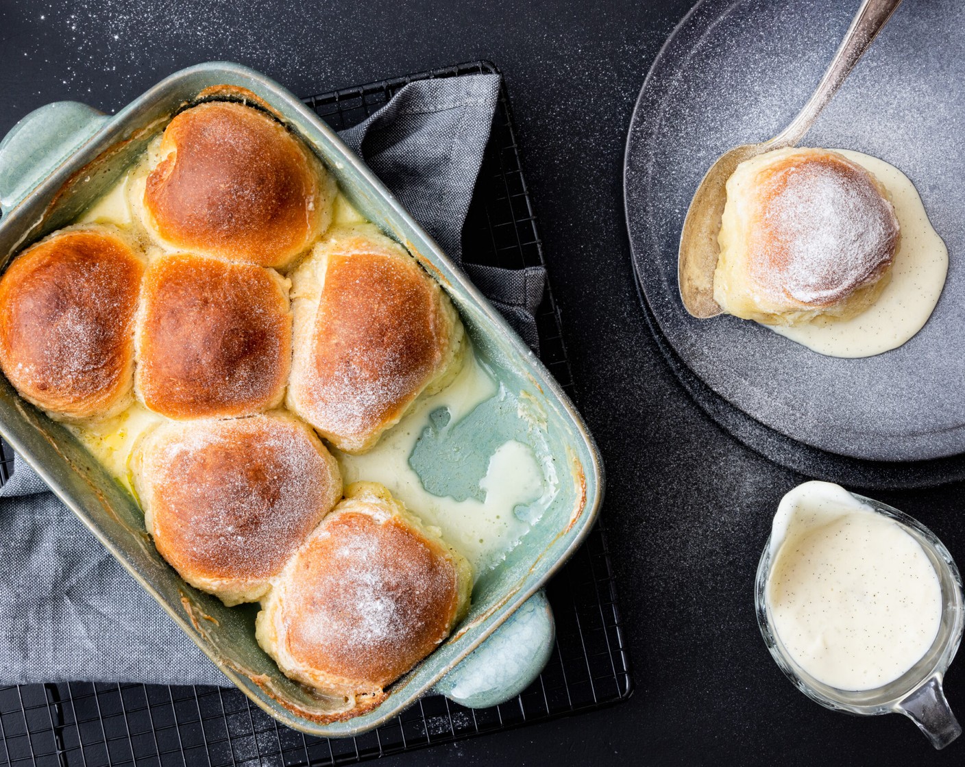 Dampfnudeln mit Vanillesauce - eine süsse Versuchung. Wer kann dem Rezept mit fluffigem Hefeteig, feinem Guss und selbst gemachter Sauce schon widerstehen?