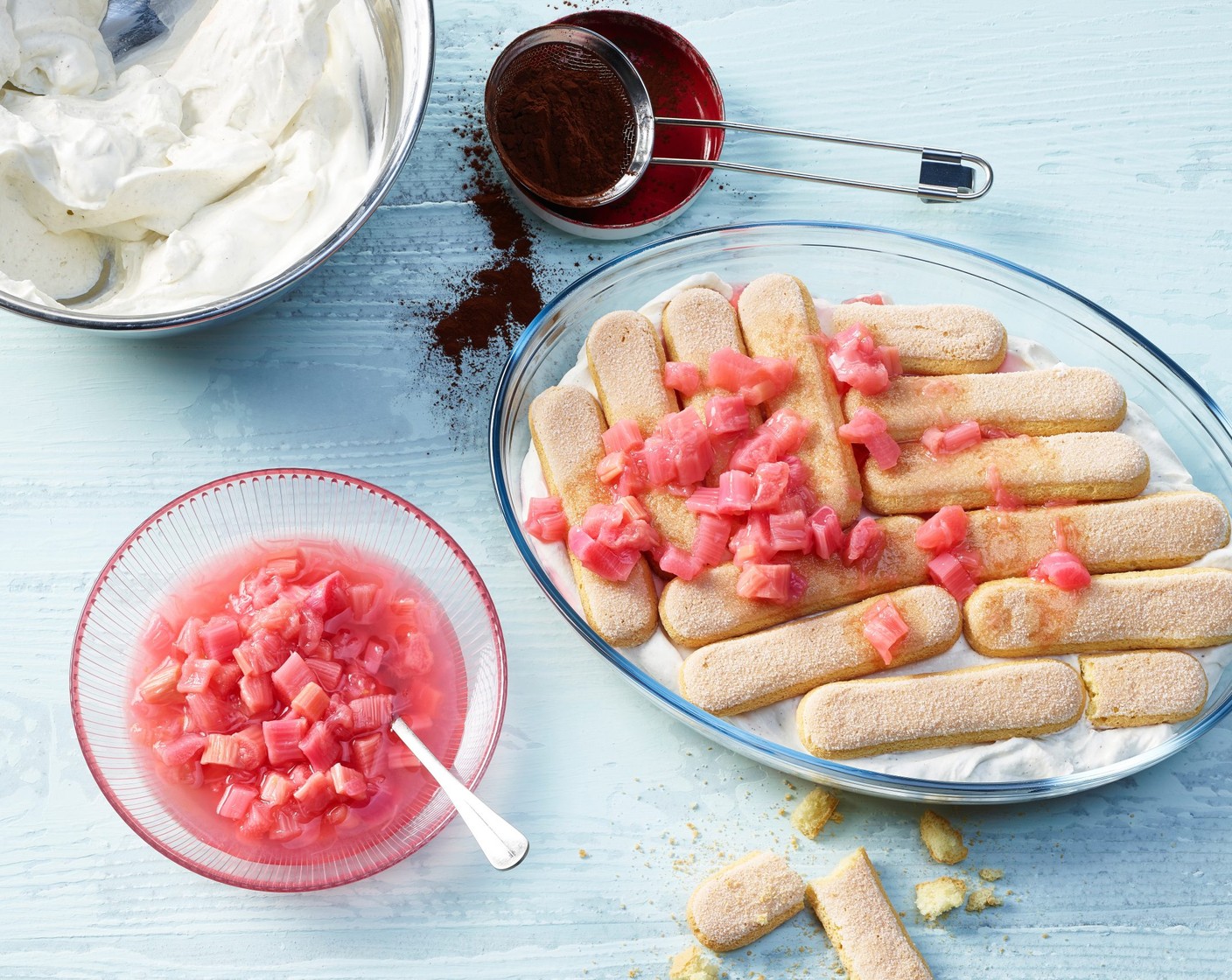 Bei diesem göttlichen Tiramisu ohne Ei, dafür mit feinem Rhabarber, verzichtet niemand aufs Dessert. Garantiert.