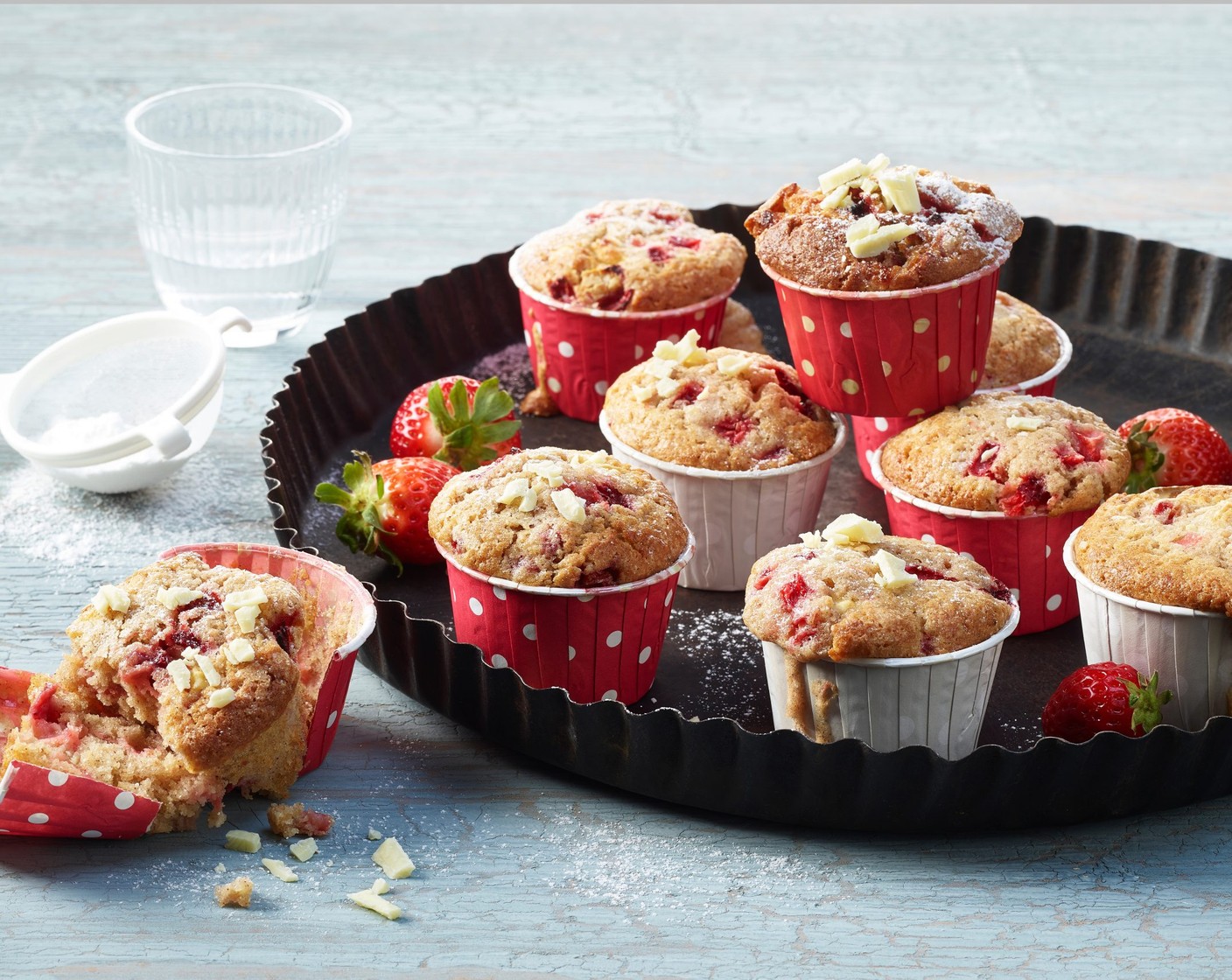 Frischen Muffins kann niemand widerstehen. Der Clou an diesem Rezept – es ist mit frischen Erdbeeren und weissen Schokoladenstückchen. So fein!