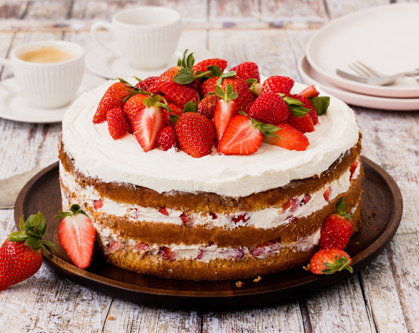Rezepte für Erdbeertorten kannst du nie genug haben. Hier aus zartem Biskuitboden, geschichtet mit Erdbeeren und einer Crème aus Mascarpone.