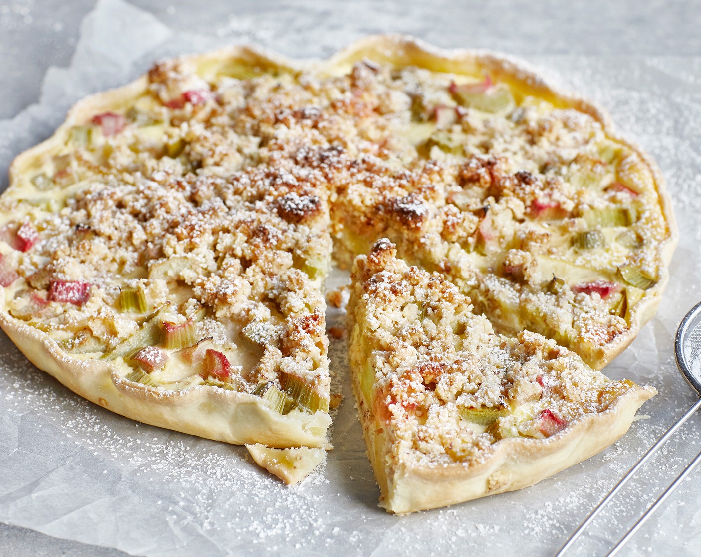 Das wird deine ultimative Lieblingswähe. Die Wähe mit Äpfeln, Rhabarber und Streusel mit Mandeln obendrauf ist eigentlich schon fast ein Kuchen.