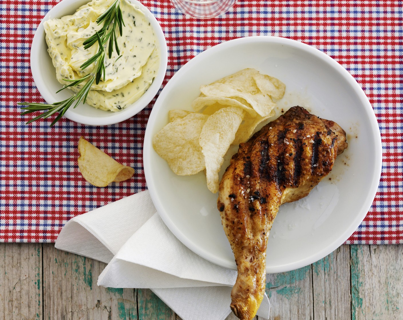 Pouletschenkel vom Grill mit Rosmarinbutter
