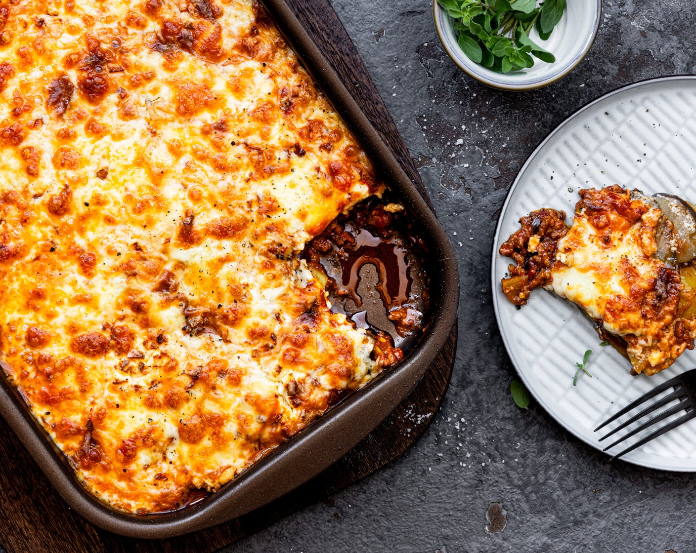 Verwöhn dich mit deinem eigenen Moussaka. Dieses Rezept ist easy. Wie bei der Lasagne schichtest du Auberginen, Kartoffeln und Saucen übereinander