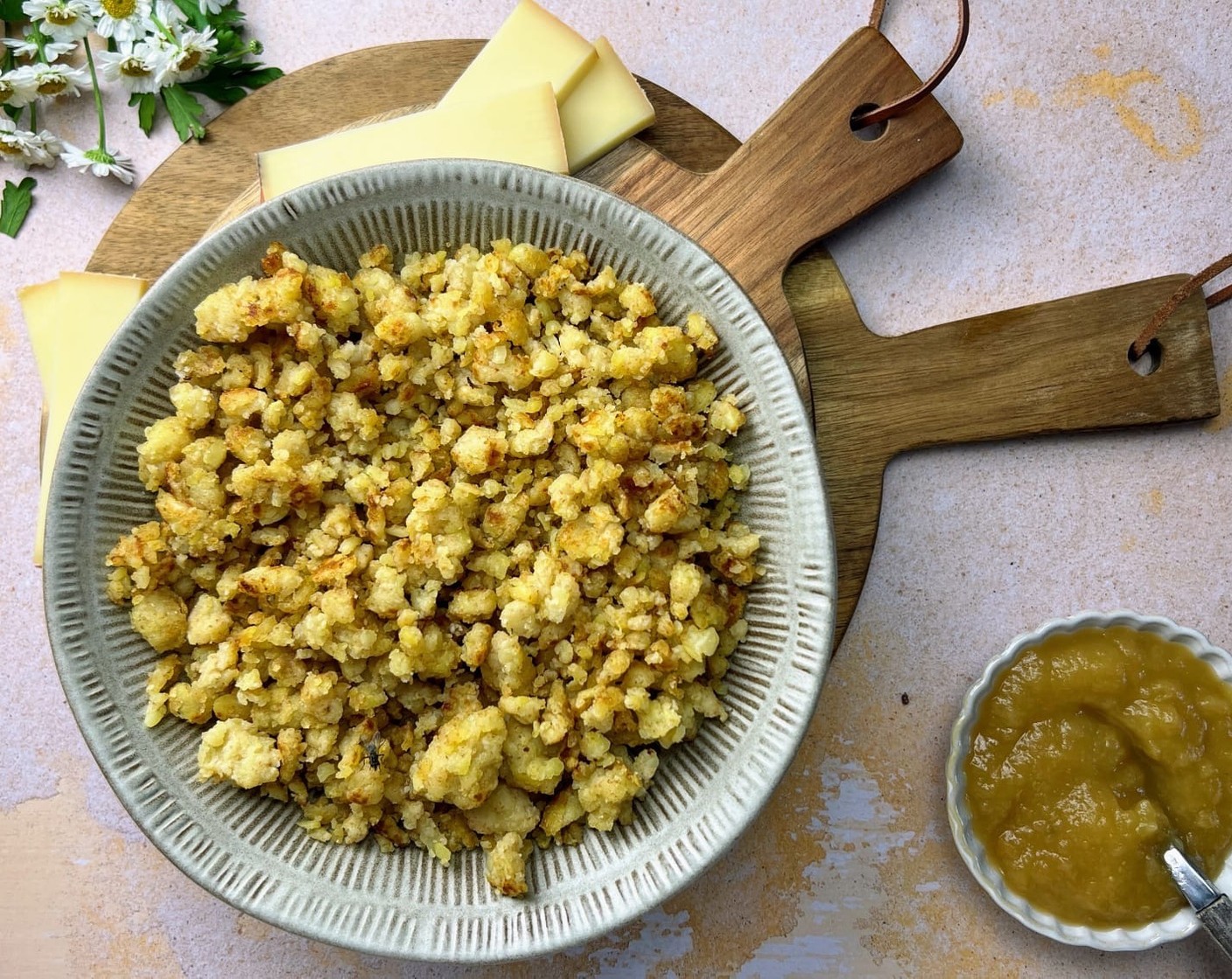 Aus nur wenigen Zutaten wird der Klassiker Maluns hergestellt. Langsames Rösten macht den Geschmack des Gerichtes aus.