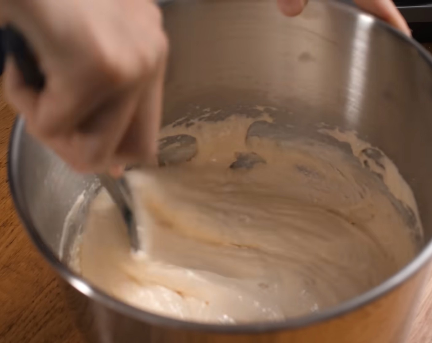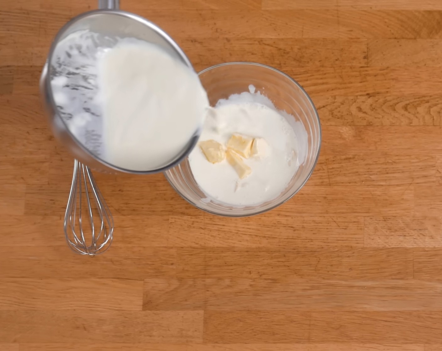 Danach die restliche Sahne zum Zucker geben und darunter rühren.