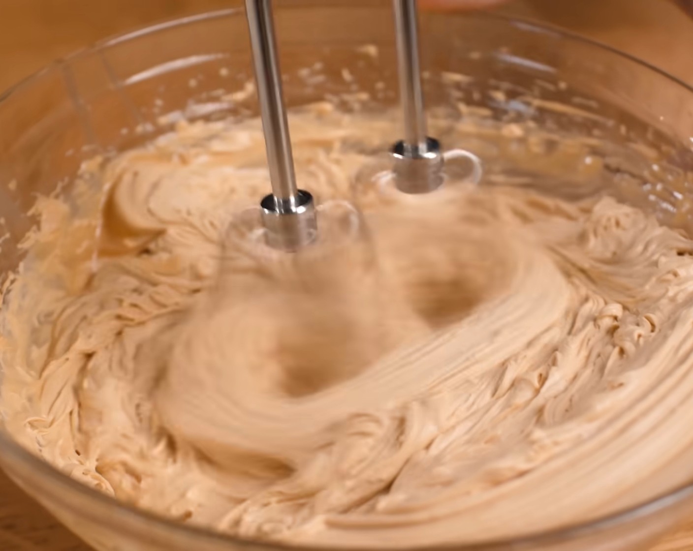 Die gut gekühlte Karamellcreme mit einem Handmixer cremig aufschlagen.