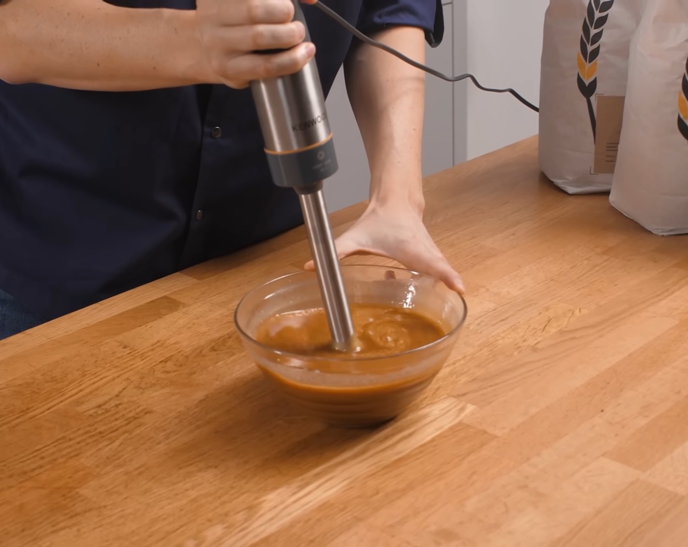 Die Creme mit einem Pürierstab homogenisieren, mit einer Folie direkt auf der Creme zudecken und bis zur Weiterverwendung kühlstellen.