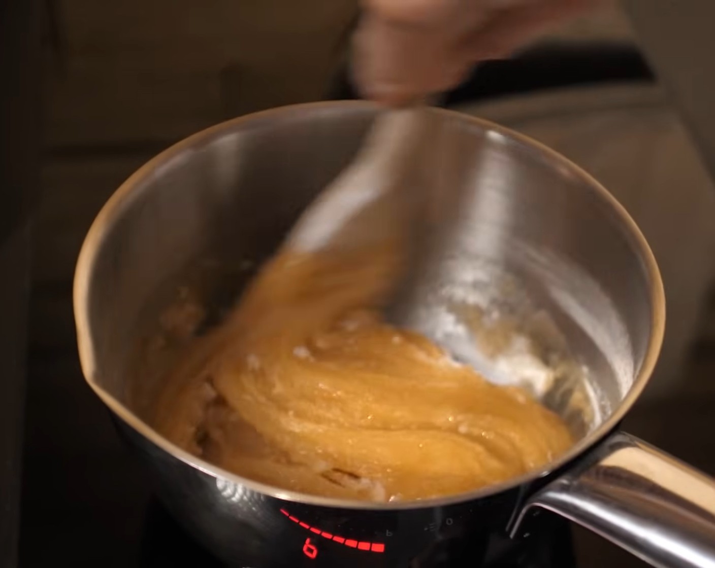 Für die Glanzsstreiche, das Wasser (200 g) in einem Kochtopf auf dem Herd aufkochen.