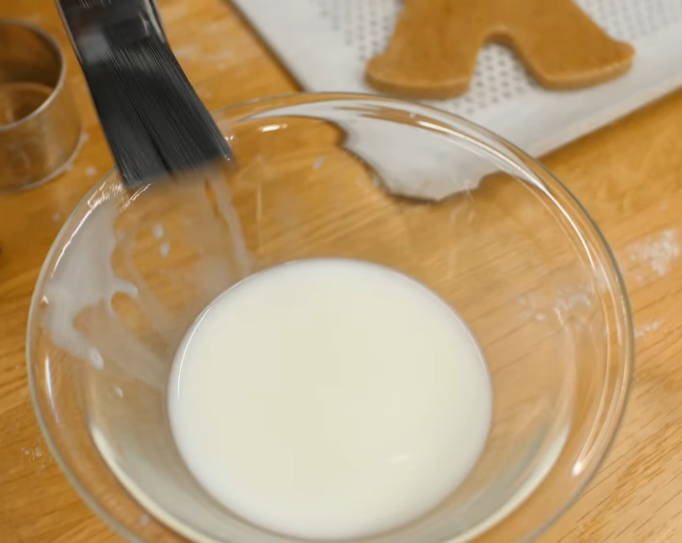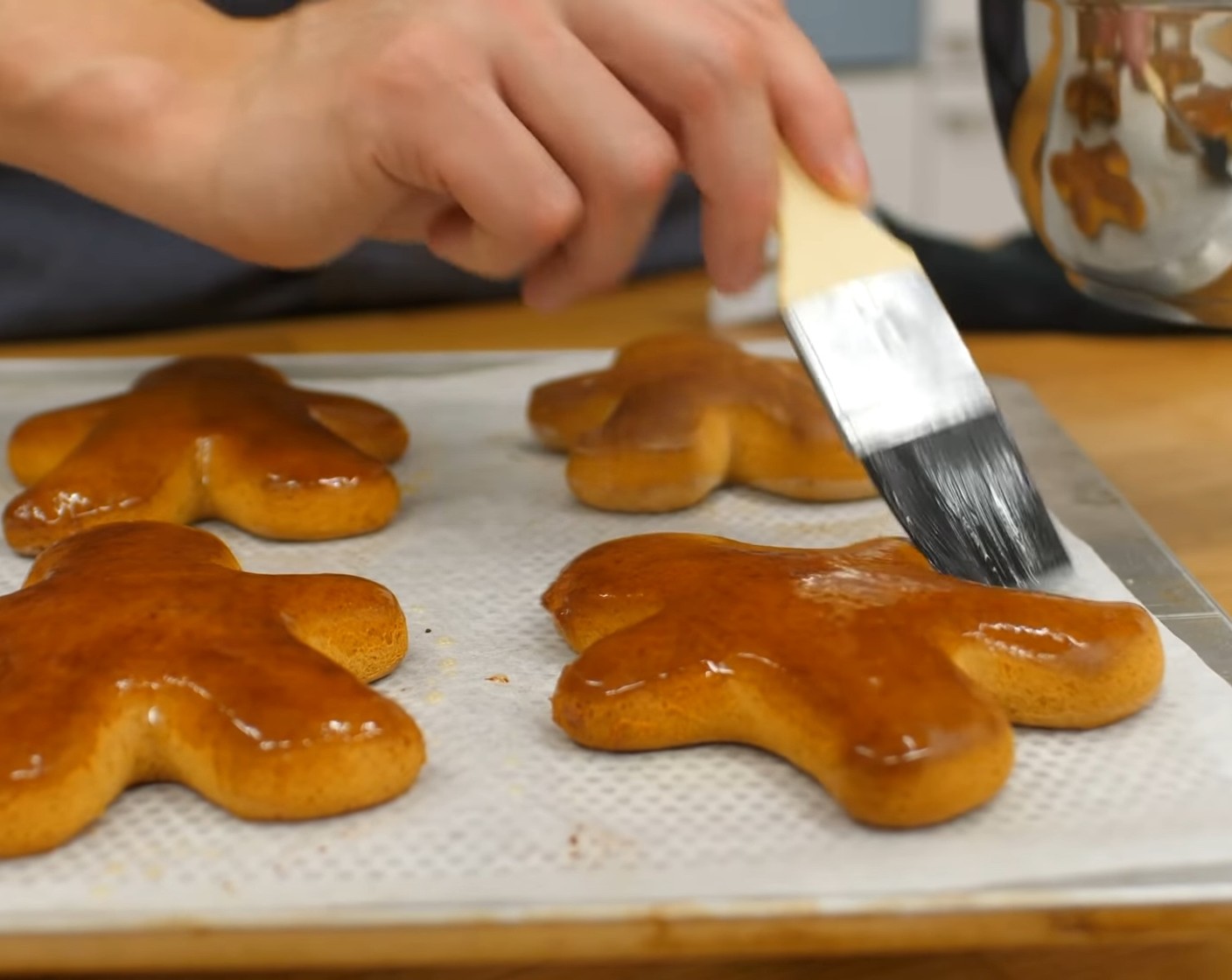 Danach die Männchen sparsam mit etwas Milch-Wasser bepinseln. Dadurch bekommen sie nach dem Backen einen schönen Glanz.