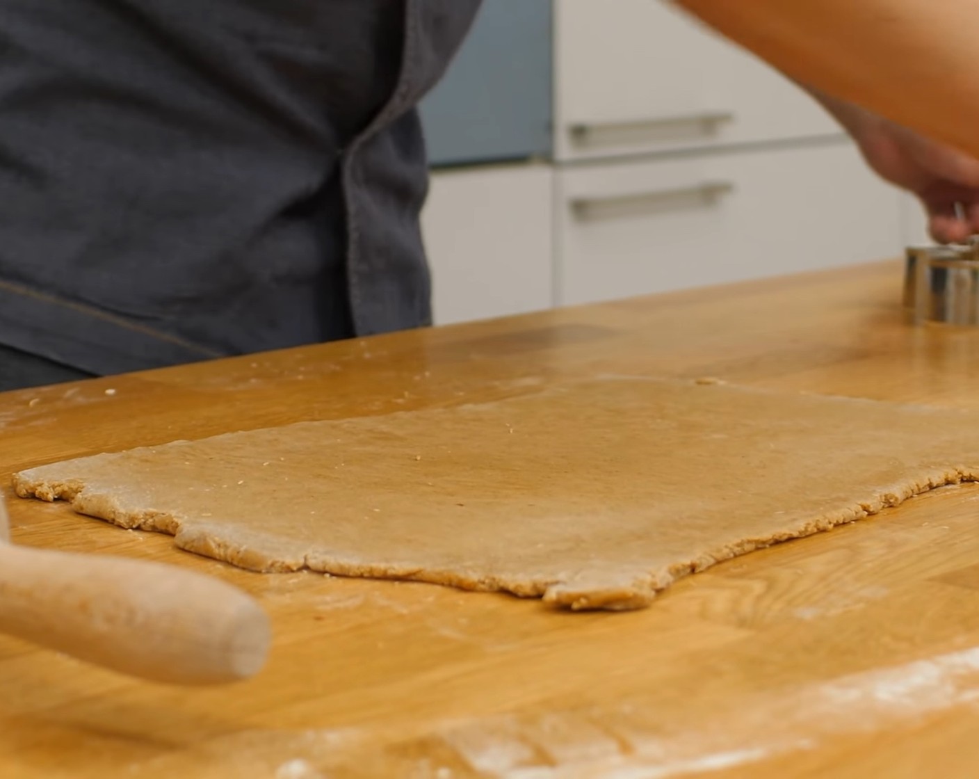 Lebkuchenteig vorbereiten: Den gut gelagerten Lebkuchenteig einer bemehlten Arbeitsfläche ca. 5 mm dick ausrollen.
